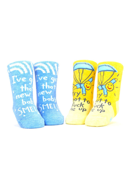 Blue Q - I've Got That New Baby Smell/ Try Not To Fuck Me Up Baby Socks (0-12M)