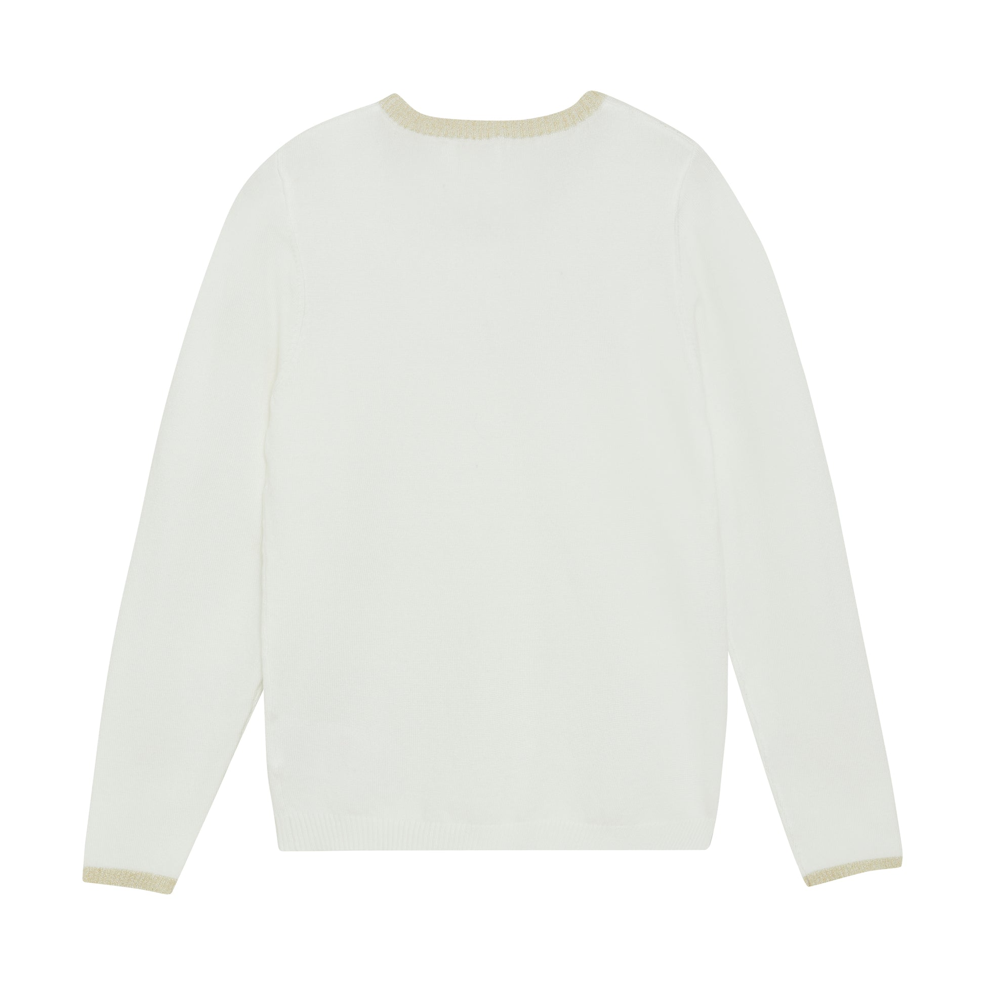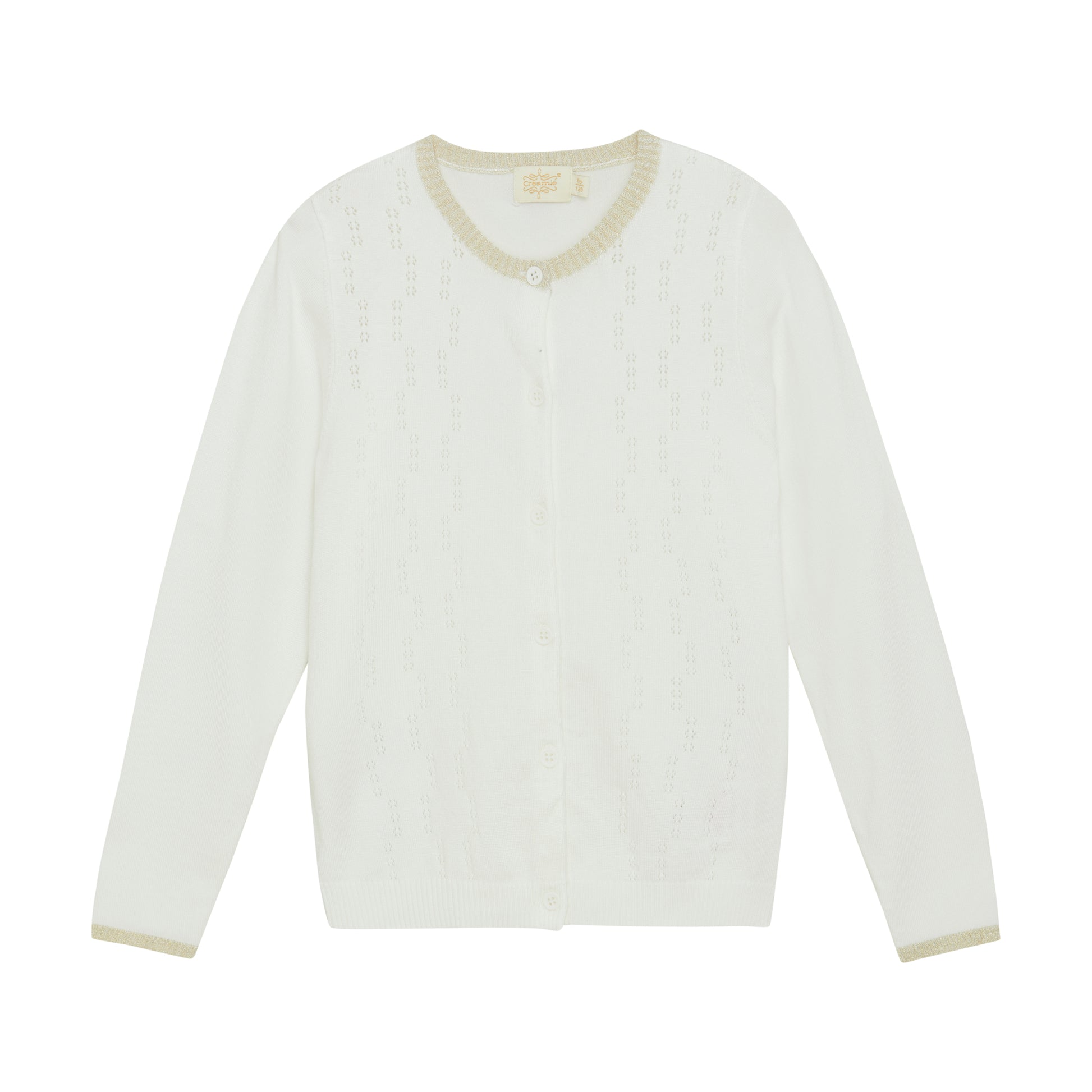 Pretty cardigan with pointelle details, adding an elegant texture. This cardigan is made from a soft blend of viscose and nylon, offering a comfortable and flexible fit. It can be styled over dresses or blouses for an extra layer of warmth and style. Creamie.