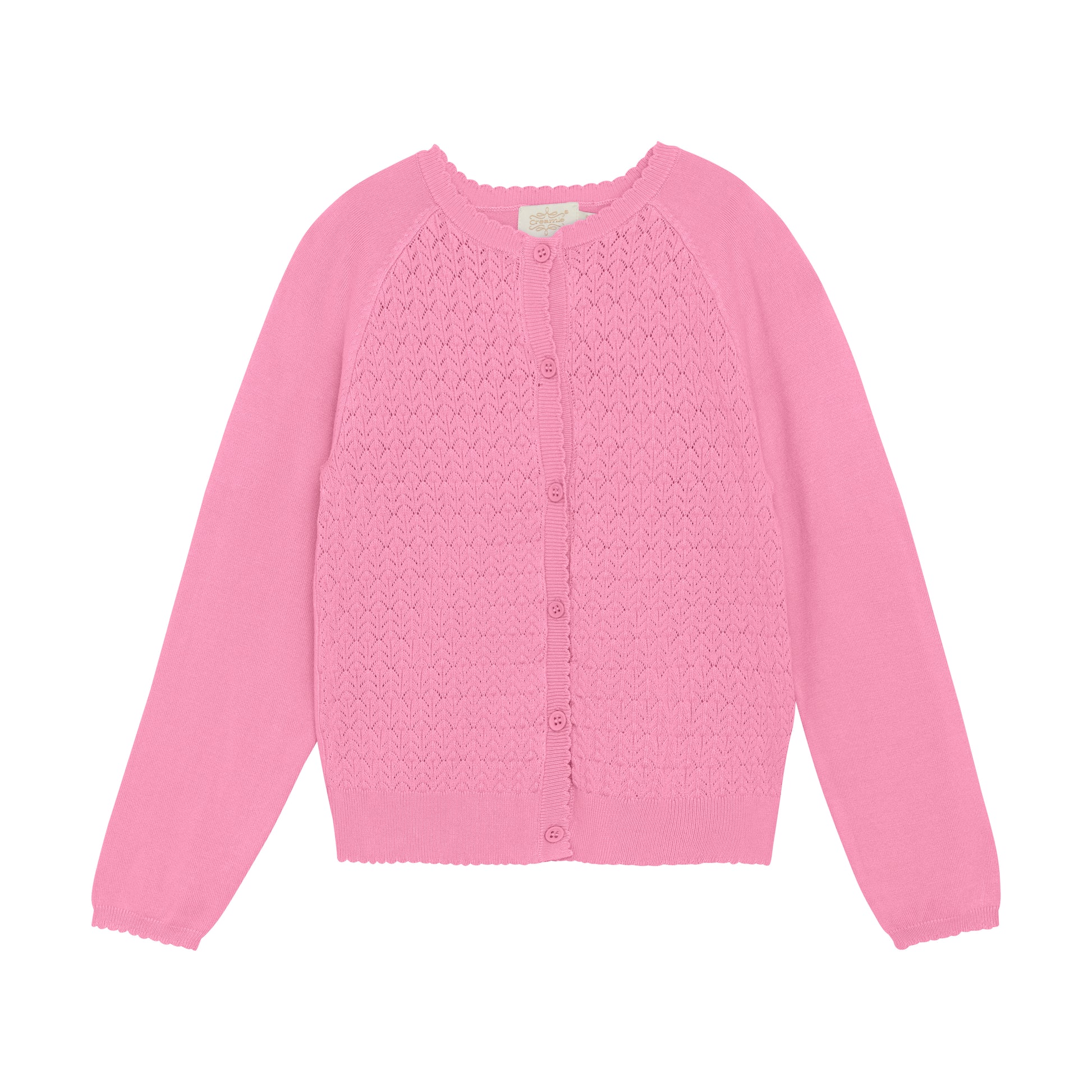 Pretty cardigan in pointelle knit, offering an elegant and feminine look. This cardigan is made from a soft viscose blend, ensuring a comfortable fit. The delicate details make it suitable for both everyday wear and special occasions where an extra layer of warmth is needed. Perfect for styling over a dress or blouse for a sophisticated look. Creamie.