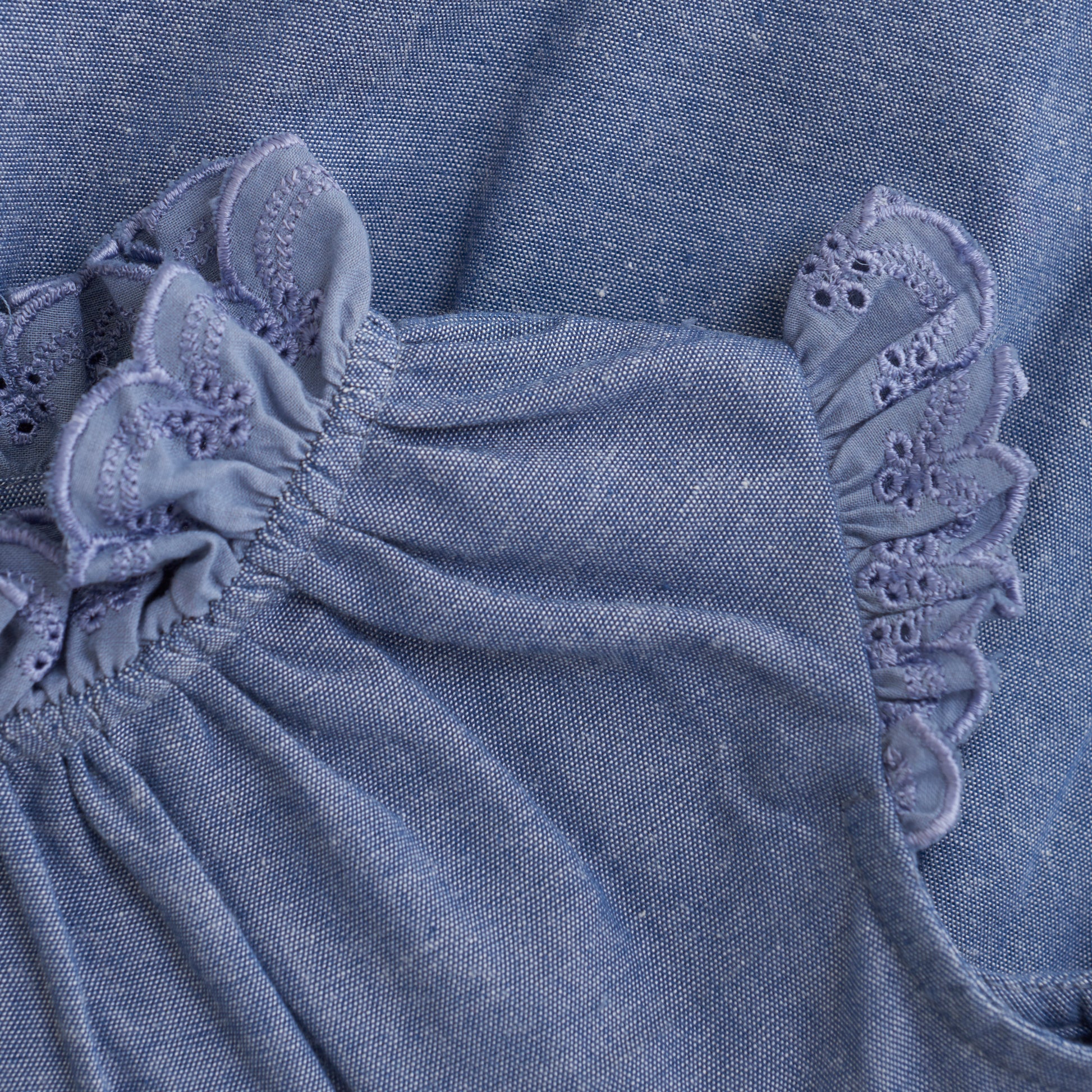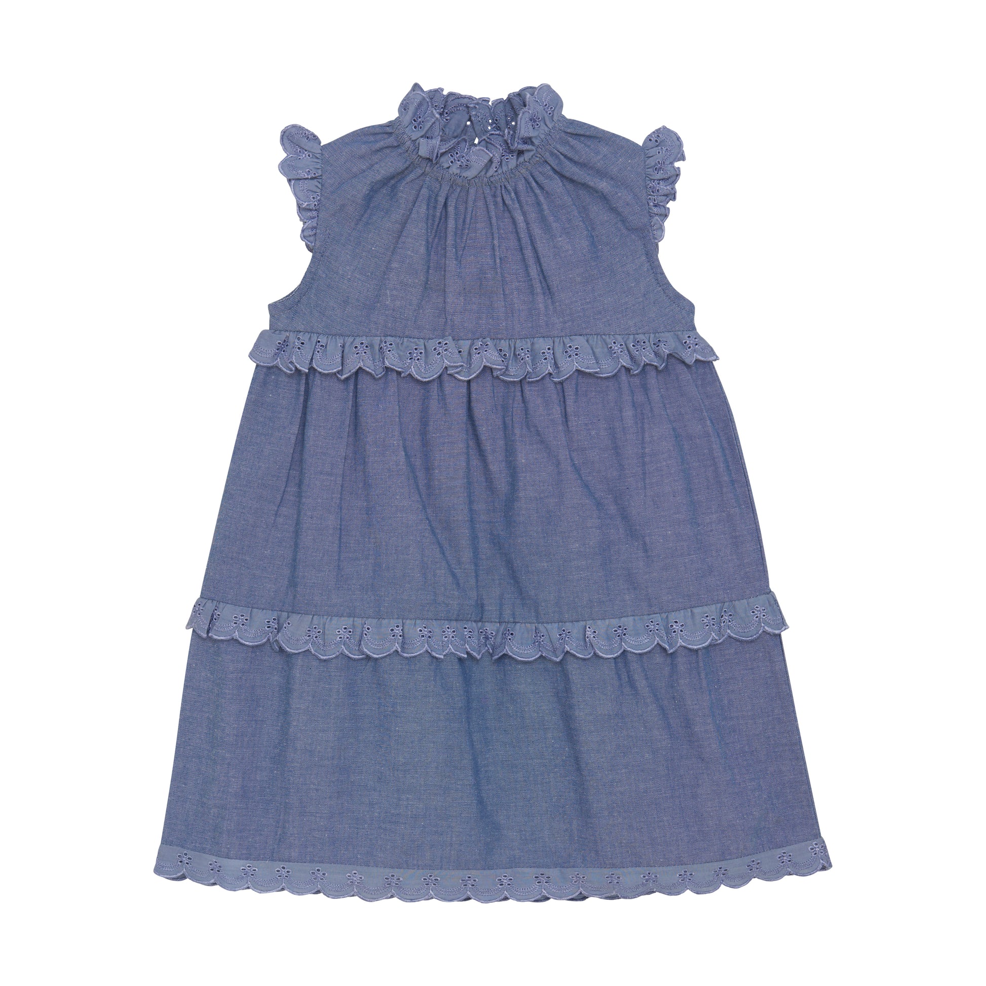 This dress from Creamie in light chambray fabric is both stylish and comfortable. It features a classic silhouette that suits both casual and formal occasions, and the soft material makes it perfect for warm summer days. The dress has a hidden elastic waistband that provides a flattering fit. Ideal for any girl looking for a timeless look with a modern edge.