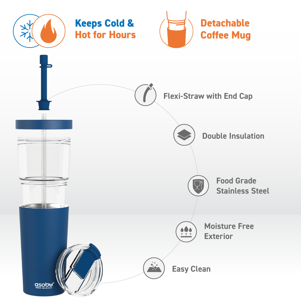 We're not saying our Marina 2-in-1 Tumbler is a work of art...but we're definitely not saying it isn't! The Marina is the perfect travel companion — a durable, spill-proof straw tumbler with a detachable insulated coffee mug, for true 2-in-1 functionality. It features a slip-proof silicone rubber base, silicone straw with a spill-proof end cap, and an additional lid for hot drinks. Triple layer insulation helps retain heat and cold, so you can enjoy your drinks for hours. It's all you need to get through a day at the office — or your next globe trotting adventure. Bon voyage!