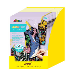 This assortment from Avenir features a new twist on scratch art: door hangars and bookmarks. Each set contains 5 door hangars or bookmarks (size: 8.3″H) that you can use to personalize your bedroom and library, and they also make great gifts for friends and family! Door hangars are animal themed, while the bookmarks are sealife themed. For ages 3 years and up.