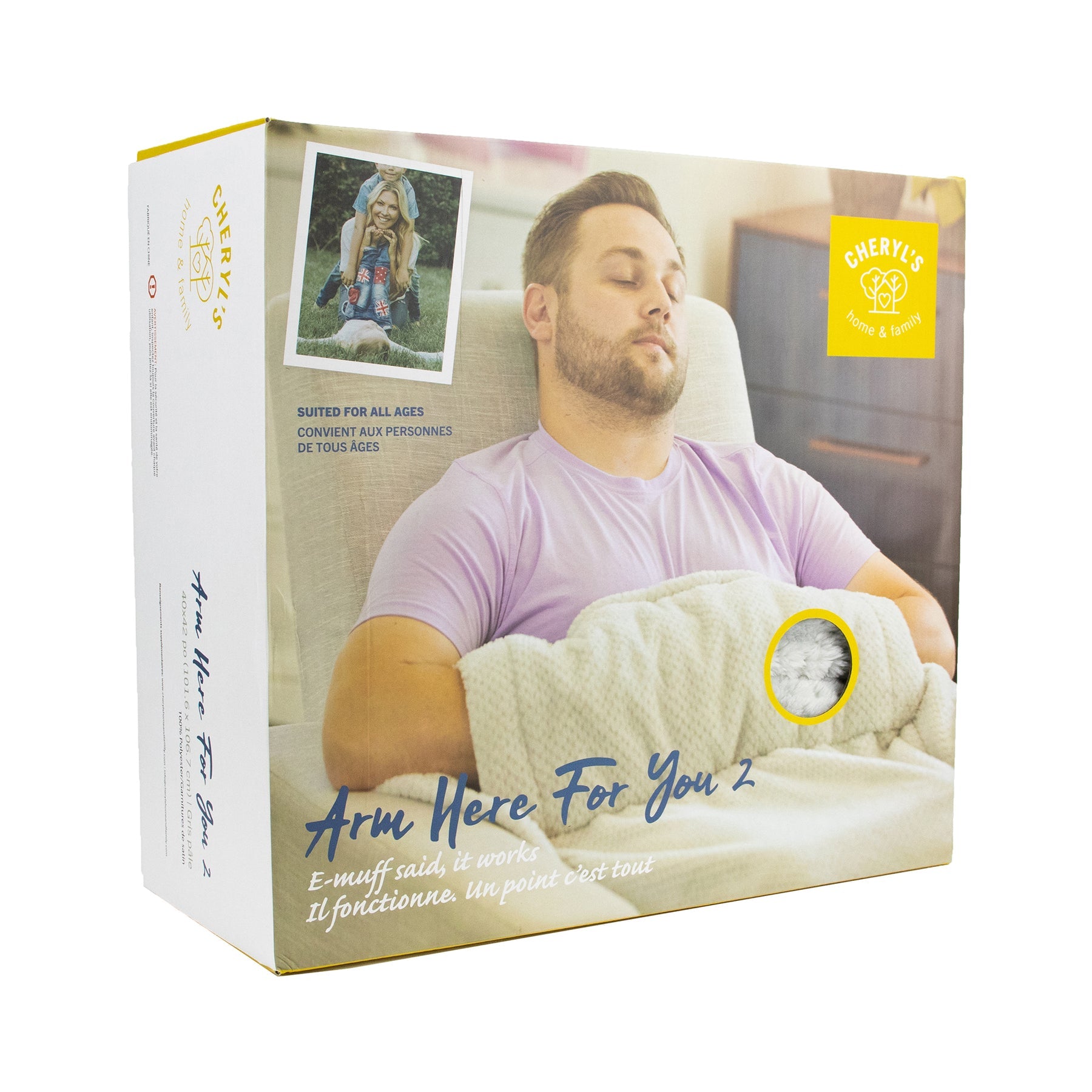 Arm Here For You 2 is the perfect blanket for travel or while relaxing at home. Simply lay Arm Here For You 2 on your lap and put your hands inside the roll. Kids love the cozy feel and seniors will appreciate this re-invention from the past that brings them comfort today.