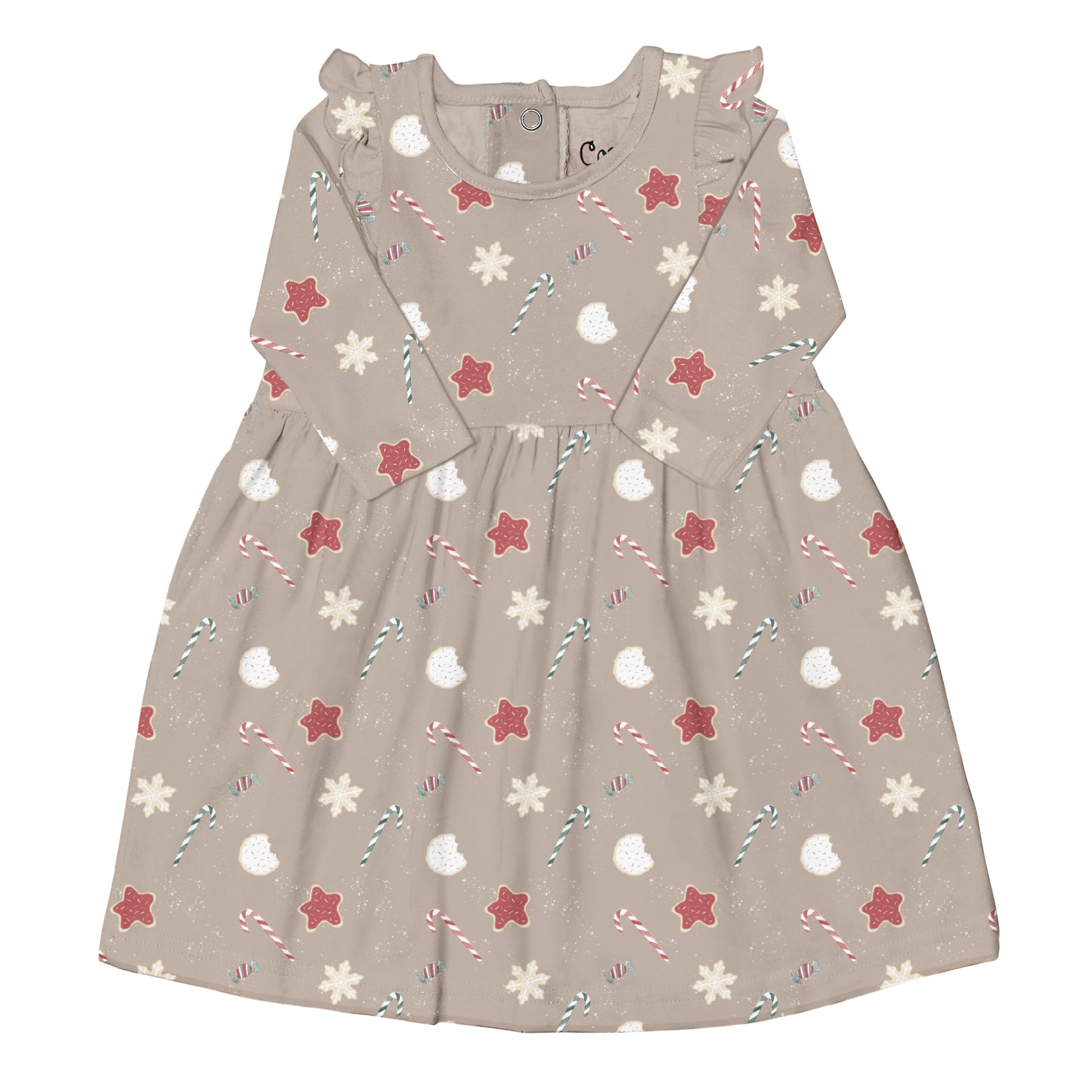 Coccoli Modal Long Sleeve Ruffle Dress -Sweet Treats on Oat - 3Y