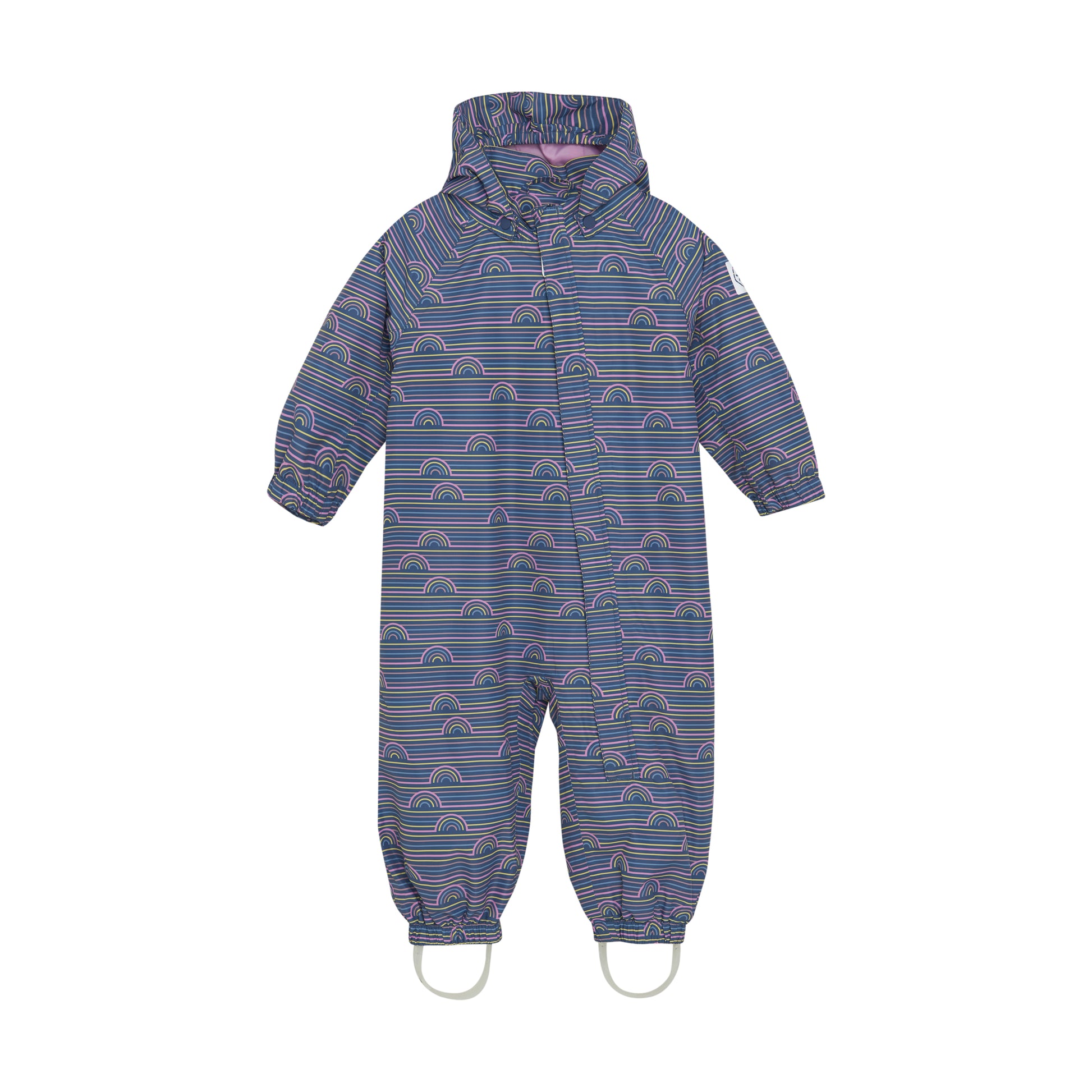 Nice suit from Color Kids. The suit has practical reflective print. The suit has a detachable hood and closes on the front with a zipper with chin protection. Durable rubber straps under the boots. The suit has two front pockets with zipper and elastic at wrists and ankles. The suit is soft and comfortable to wear as well as beeing practical for outdoor play. The suit has been given a water and dirt repellent coating. It is waterproof with a water column pressure of 15.000 mm. Coated with BIONIC FINISH ECO. Certified acc. to GRS- Made with 50% Recycled Material CERES-0366