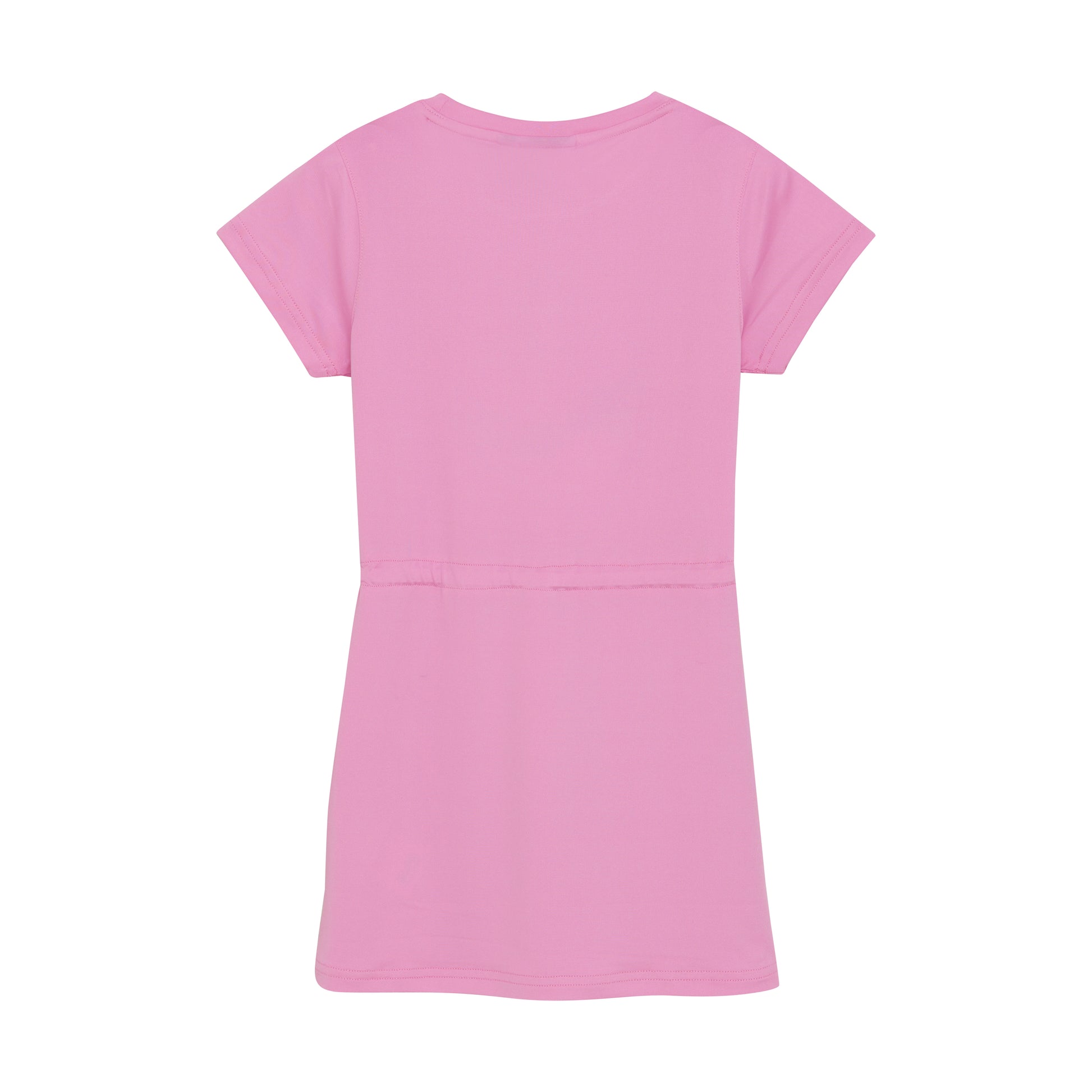 Nice dress with front print, with more features that makes it sporty. The dress has short sleeves, ties around the waist and is made of quick drying and breathable fabric with a lot of stretch. Wearable over swimwear on a trip to the beach.