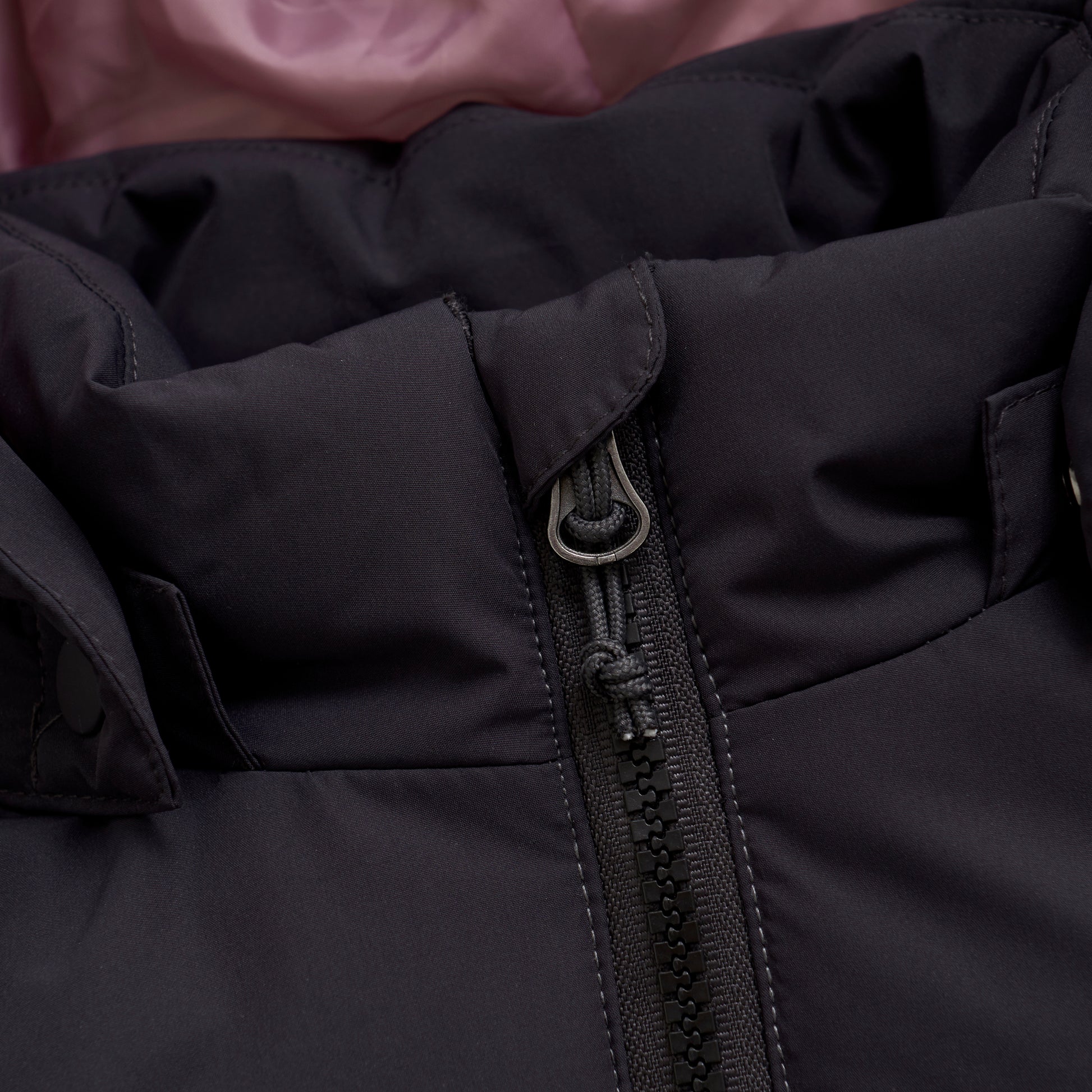 Warm quilted snowjacket for your child in durable material with all-over-print. The material is breathable, windproof and waterproof, so your child can stay out in the rain, snow and wind without getting cold and wet. Tested wear resistance of 20.000 rubs, water column pressure of 8,000 mm. and breathability of 3,000g.The jacket closes with a quality zipper at the front. Good inside wind pole. Chin protectors make sure that the zipper feels soft under the chin. The jacket has detachable hood and outside zip pockets. Reflective details on the back of the jacket and on the sleeve. Inner cuffs with hole for thumb. It has a name tag inside. The snowjacket is made of recycled material. Coated with BIONIC FINISH® ECO. Certified acc. to GRS - Made with more than 50% Recycled Material
