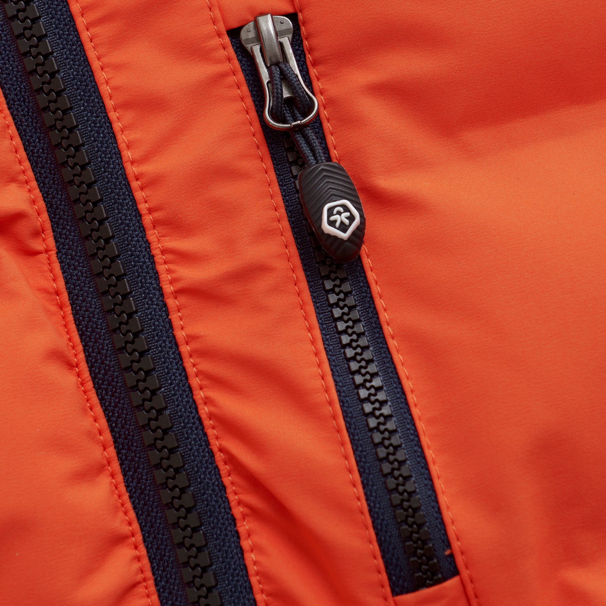 Long and warm quilted winter jacket in durable and partially recycled material. The material is breathable, windproof and waterproof, so your child can be out in rain, snow and wind without getting cold and wet. Tested wear resistance of 20,000 rubs, water column pressure of 8,000 mm. and breathability of 3,000g. The jacket closes with a quality zip at the front and has two external pockets. The chin guard ensures that the zipper feels soft under the chin. The jacket has inner cuffs with space for the thumb. Reflective details on the back and on the sleeve for increased visibility. With name tag inside for easy identification. Certified acc. to GRS - Made with more than 50% Recycled Material CERES-0366