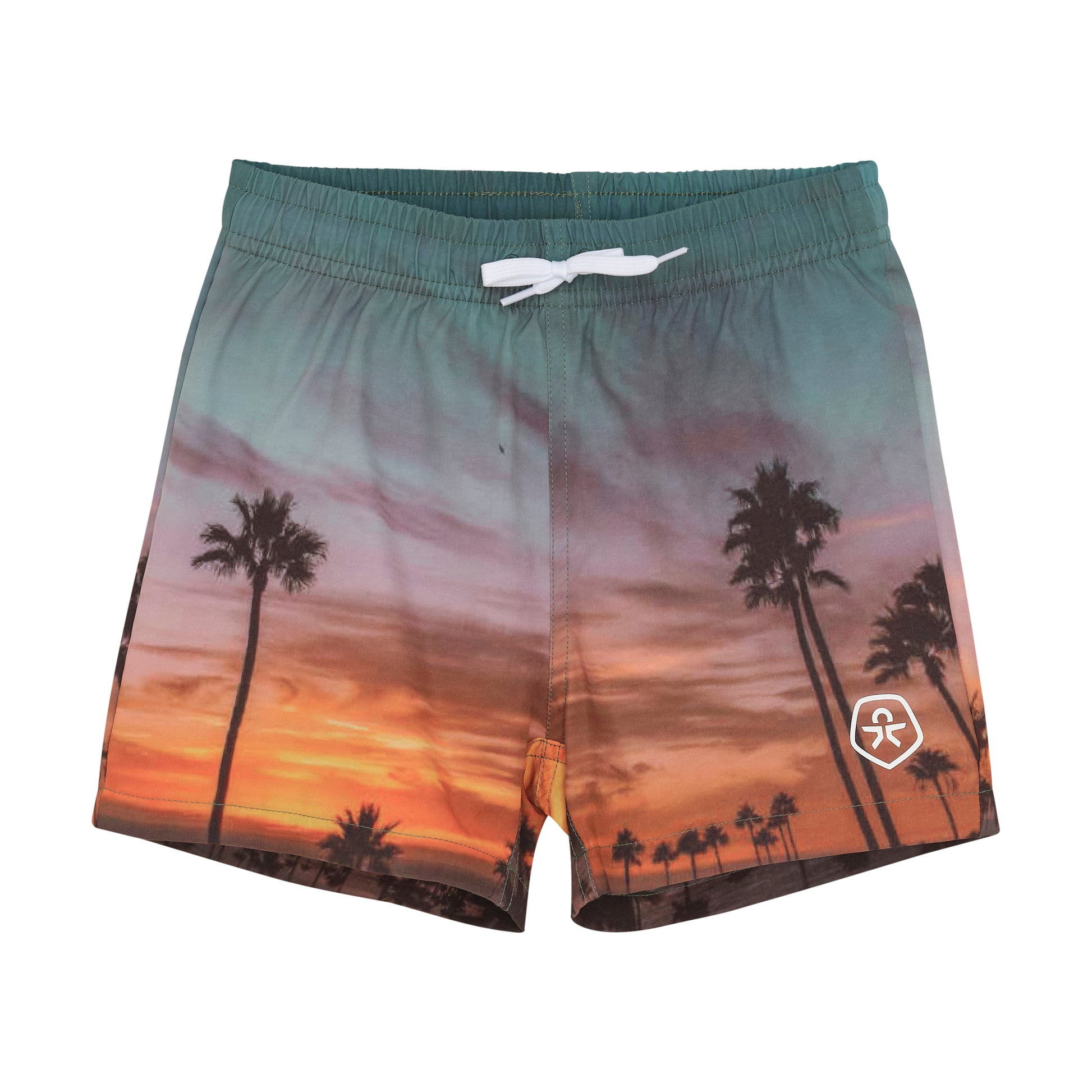 Cool swim shorts with a loose fit and drawstrings that you can tighten at the waist. Elastic around the waist. The swim shorts has a photo all-over-print, dries quickly and has Color Kids logo. Certified acc. to GRS -Made with 34% Recycled Material CERES-0366. Certified acc. to OEKO-TEX® STANDARD 100 Cert. No. 2476-411R DTI
