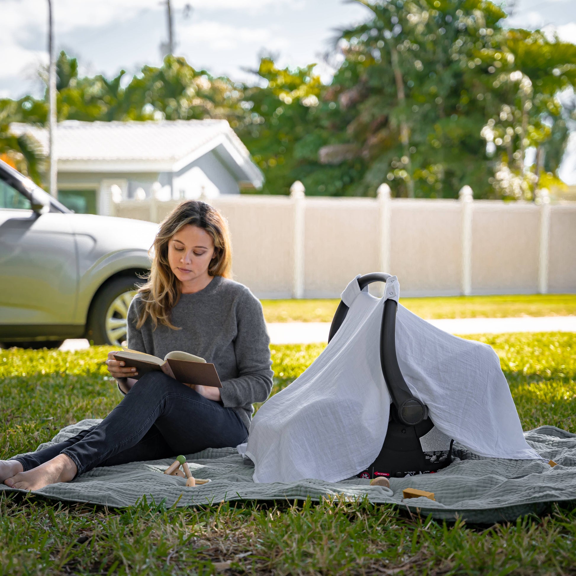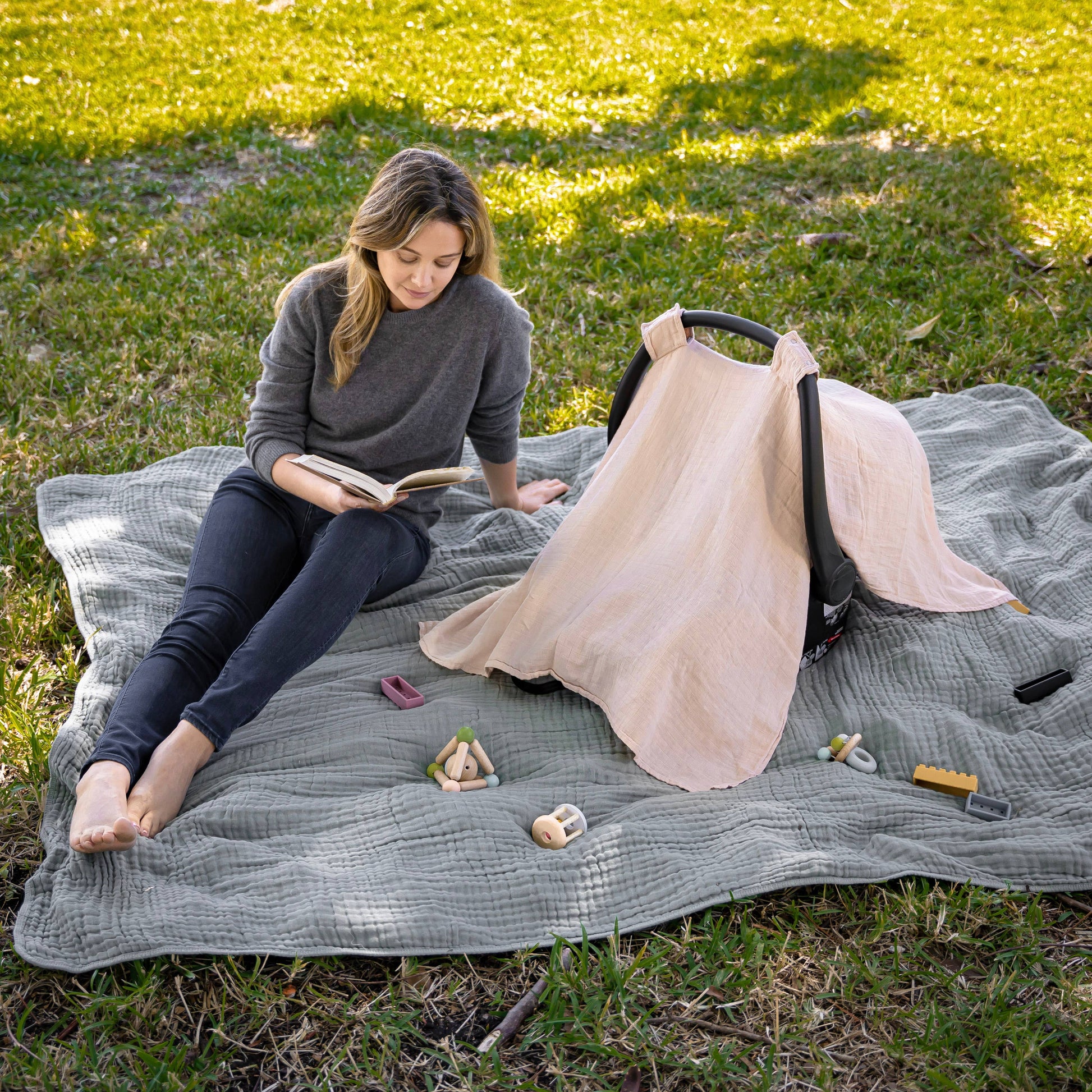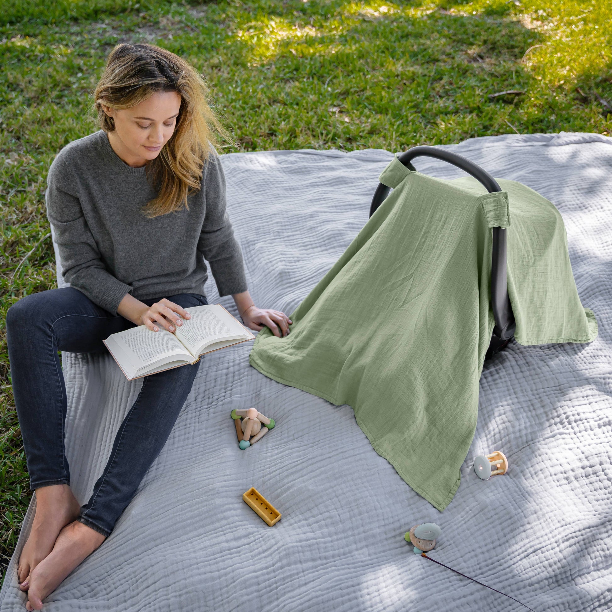 Comfy Cubs - Muslin Cotton Baby Car Seat Cover by Comfy Cubs: Sage