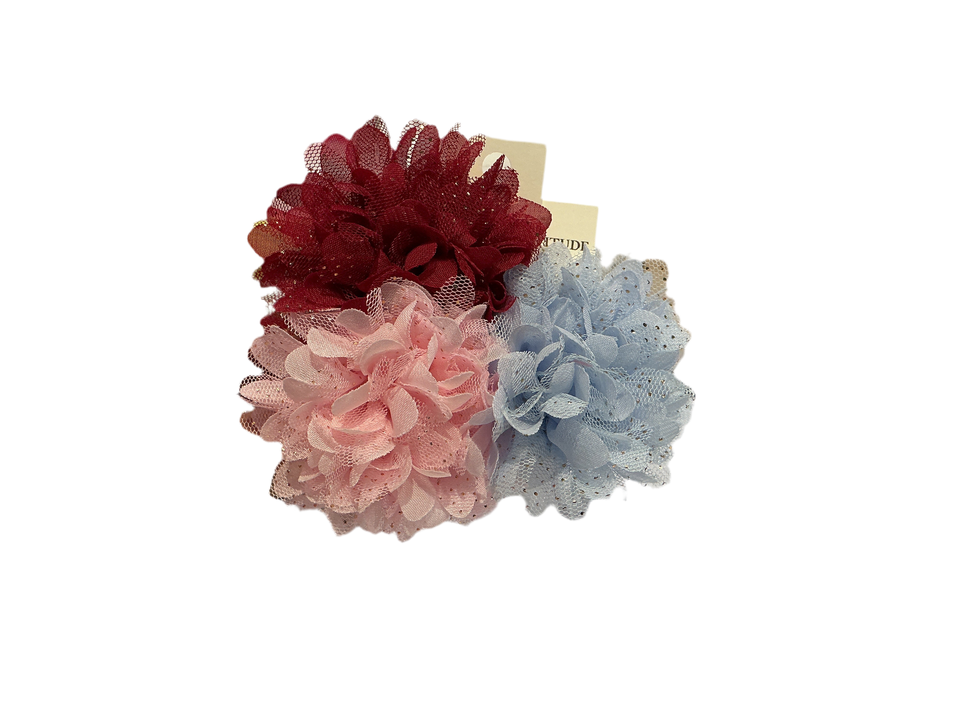 Pack of three pretty flower hair clips, adding a feminine and romantic touch to any hairstyle. These clips are made from lightweight material and are perfect for styling hair for both everyday wear and special occasions. The delicate flower designs make them an elegant choice that suits any style. Creamie.