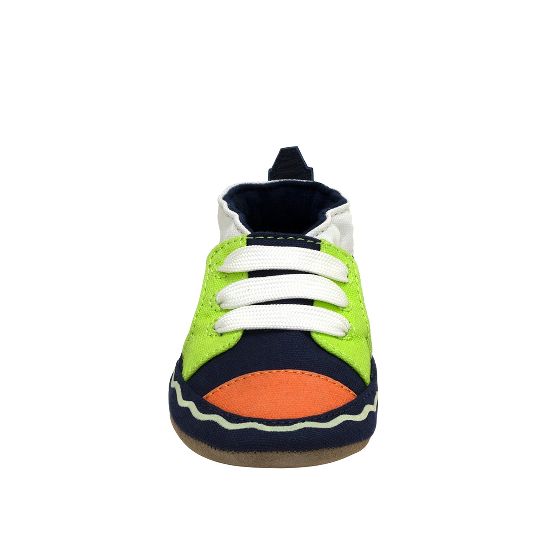 It’s glow time! With the Crayola Glow with Kindness soft soles by Robeez your baby is sure to stand out. At daytime this shoe is a stylish color blocked look, but as the sun goes down the shoe transforms into a glow-in-the-dark experience making your little one glow as they walk. The suede bottom is flexible with movement, making it easy to wear, while still staying on his or her foot. The room to grow ensures that they'll fit comfortably even when they're at their biggest!