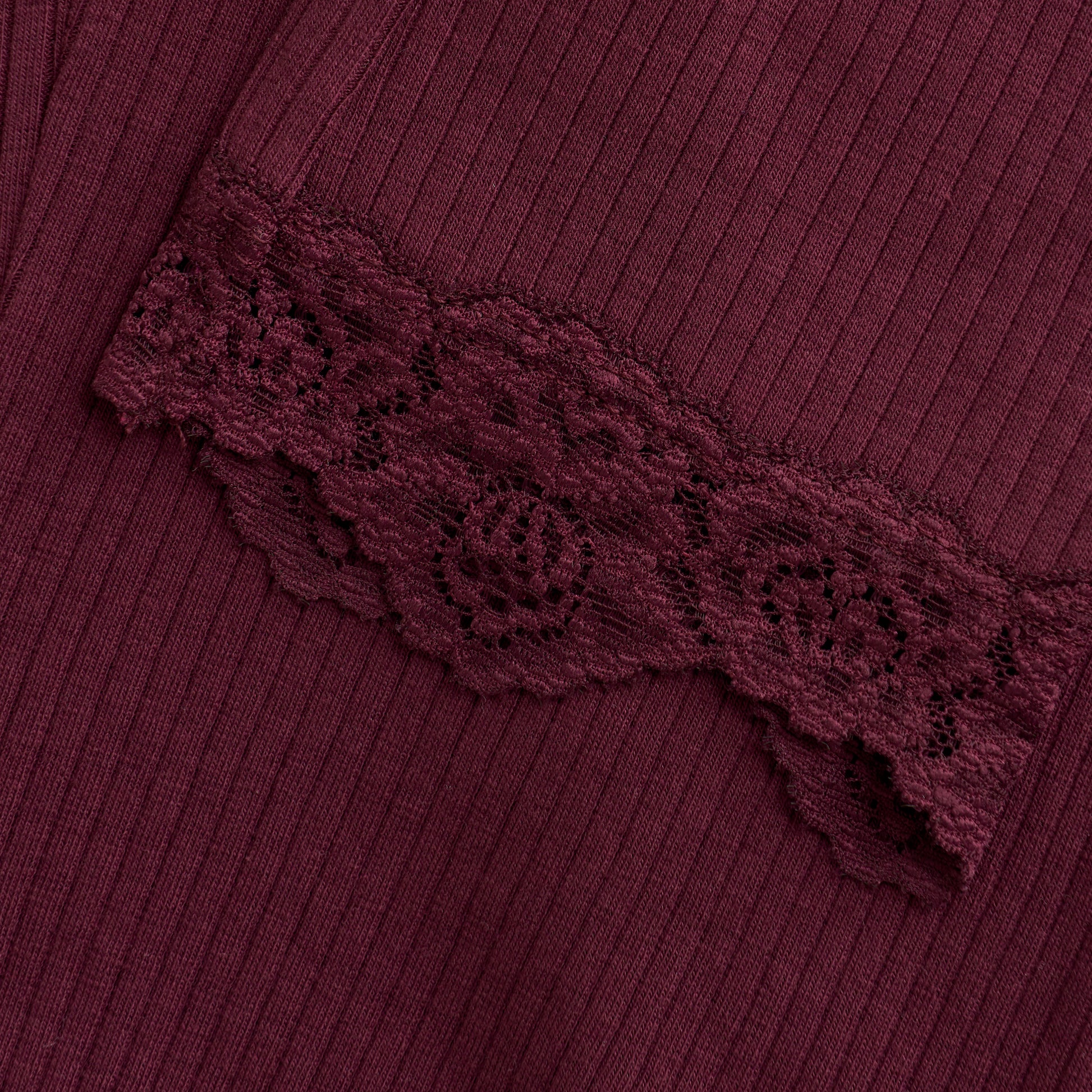 Fine plain colored ribbed leggings from Creamie. These leggings have a straight leg, elasticated waist and lace trim at the bottom. There are no seams in the sides which makes them more elegant. They are made in a soft and delicious mix of cotton and modal. This product contains TENCEL™ fibers. TENCEL™ is a trademark of Lenzing AG