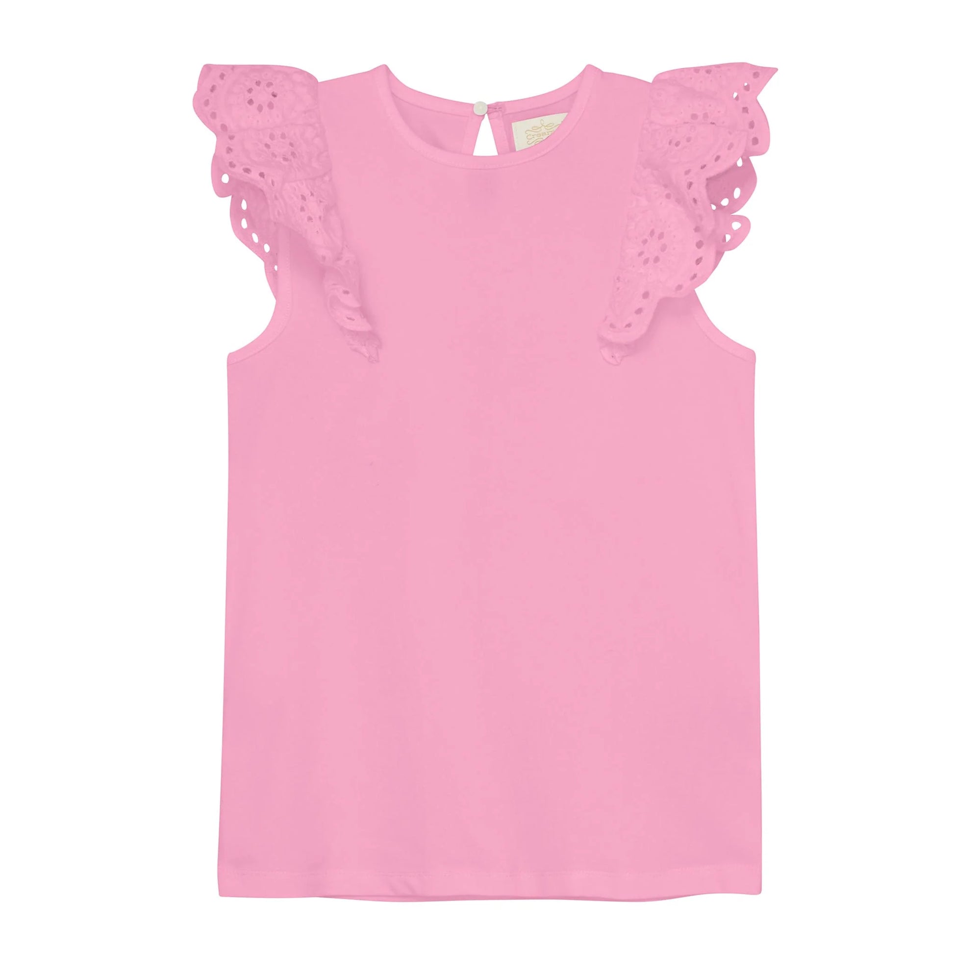 Feminine top with delicate lace trims, adding an elegant and romantic touch. The top is made from soft organic cotton, ensuring it is both comfortable and stylish. It can be worn on its own on warmer days or layered under a cardigan for a layered look. Perfect for both everyday wear and festive occasions where a feminine touch is desired. Creamie.