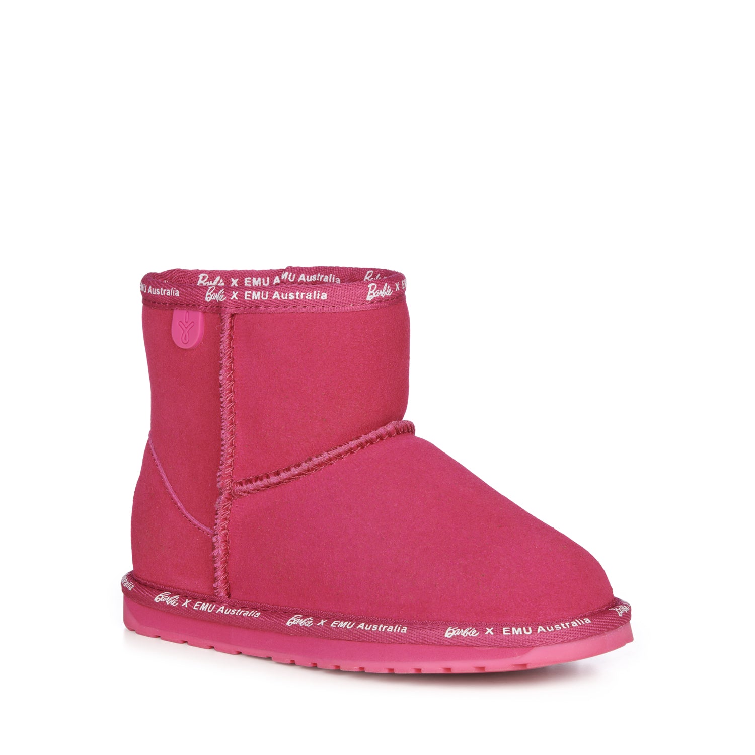 EMU Australia's classic styled BarbieTM Wallaby Mini is a stylish and comfortable children’s ankle boot for every day wear. Made with premium suede and lined with soft Merino wool, these boots keep feet warm and cosy. ©2024 Mattel.