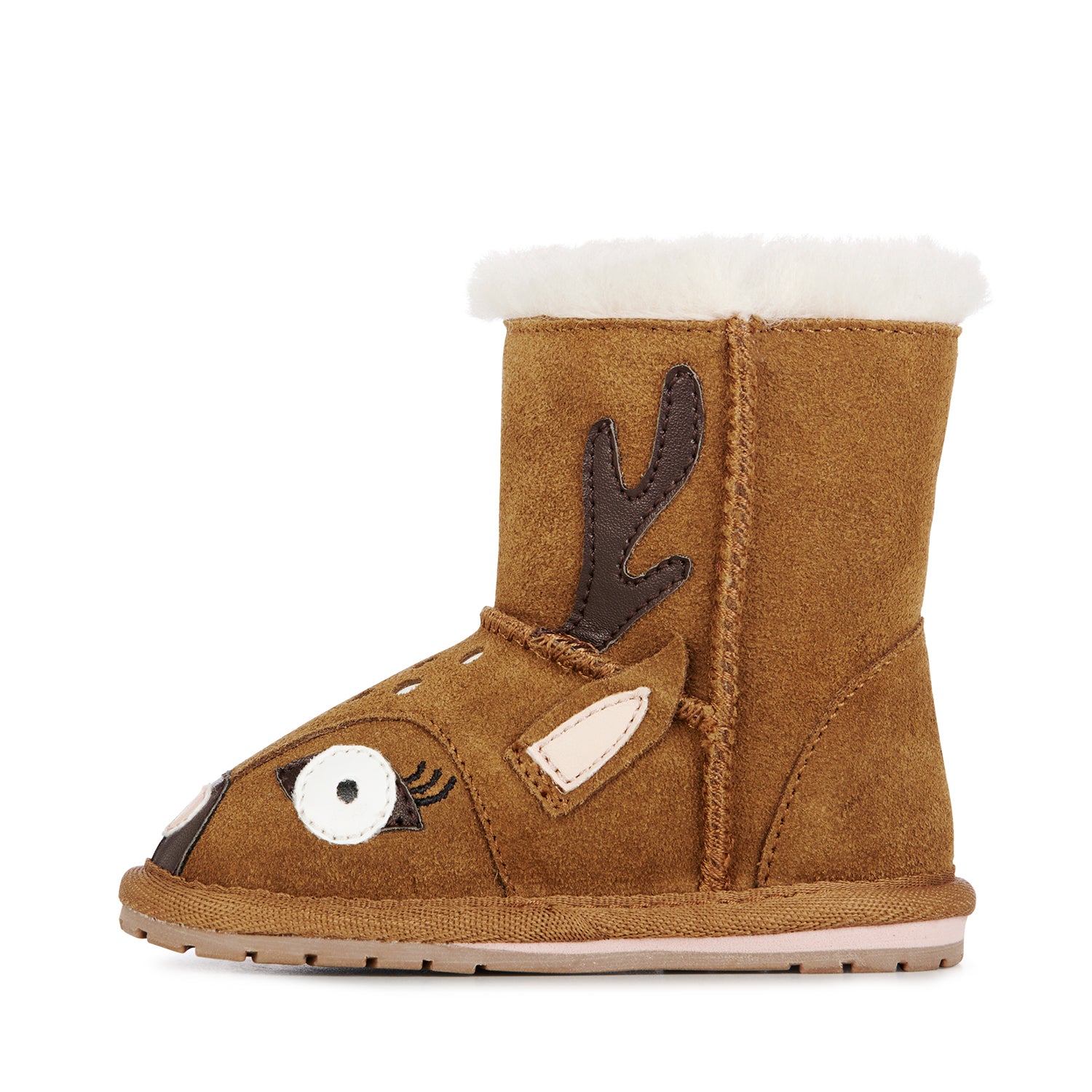 The Deer Walker is a fun and friendly new addition to the Little Creatures family. Made from premium suede and Australian Merino wool lining to provide comfort and warmth to new walkers.