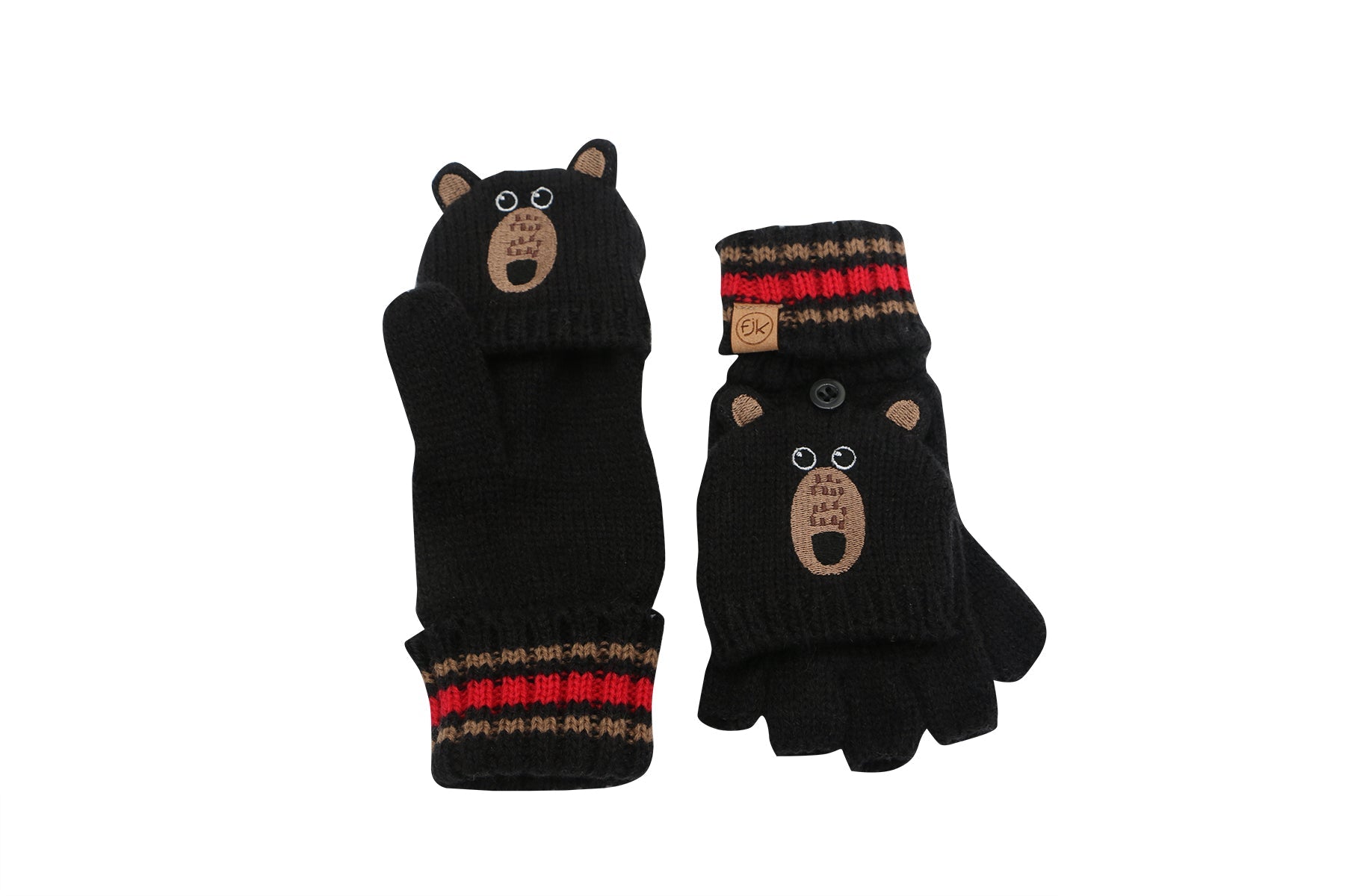 FlapJackKids- Knitted Fingerless Gloves w/Flap -Black Bear