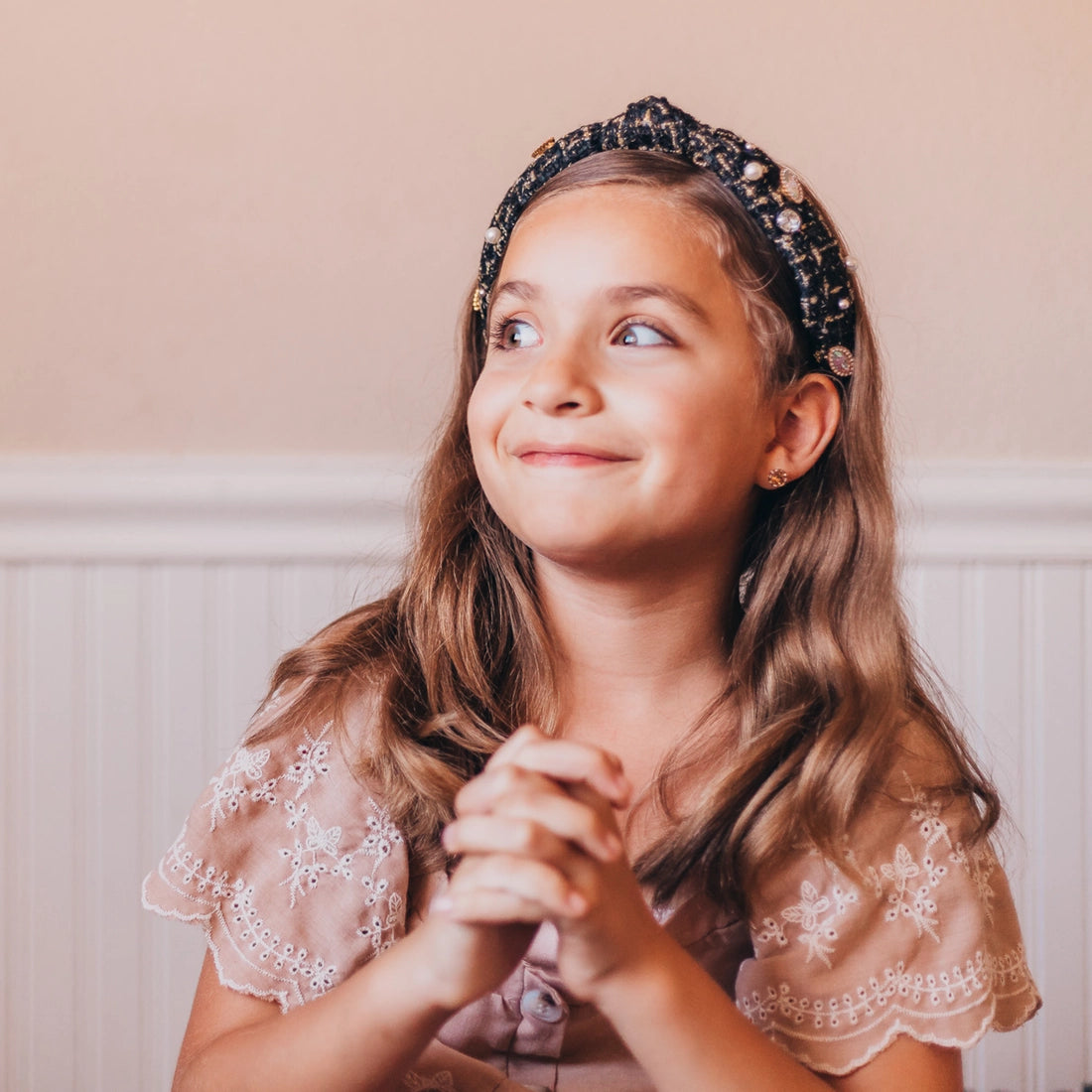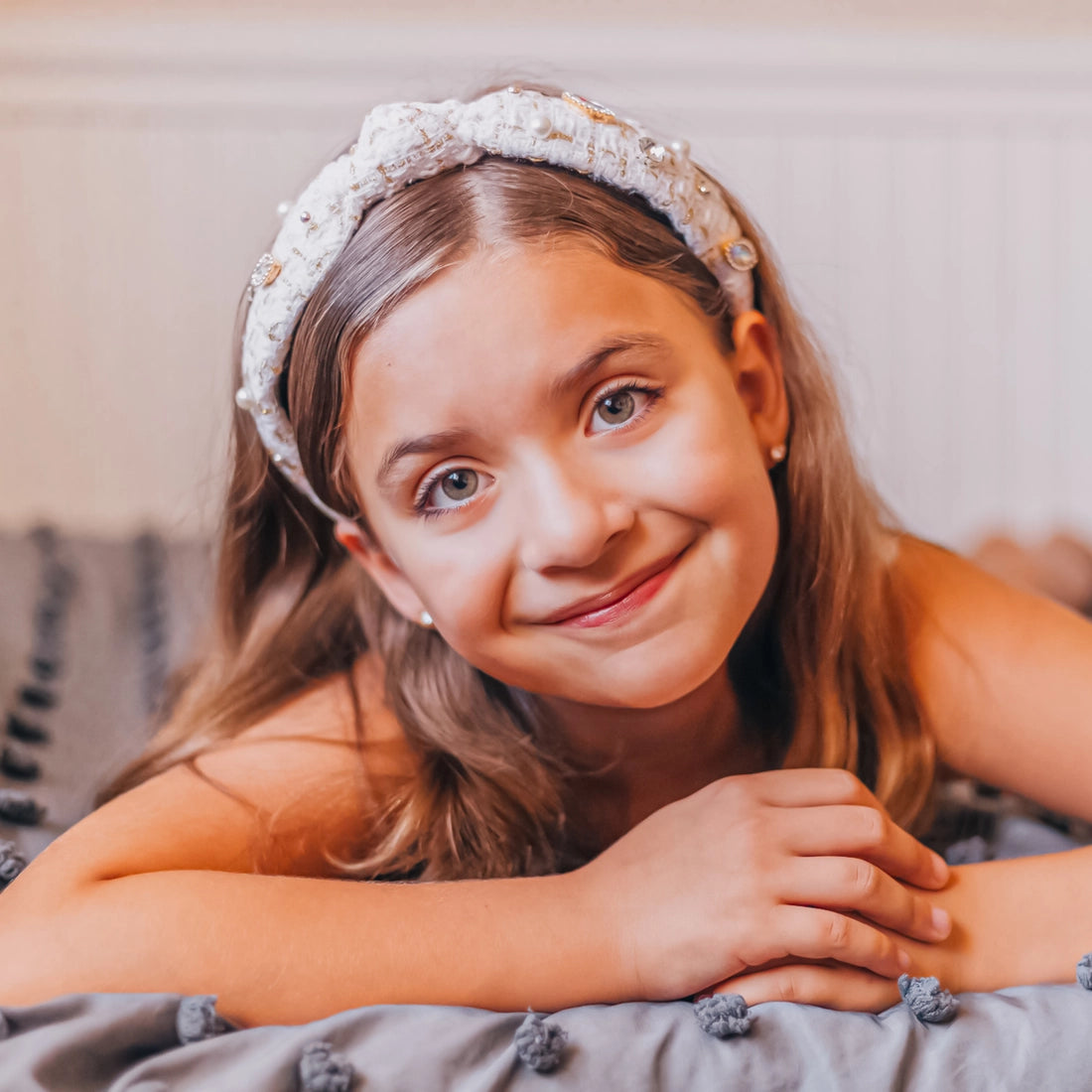 Frog Sac - Embellished Knot Headband - Tweed Rhinestone Pearl