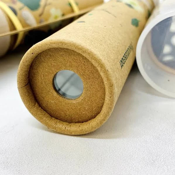 Add flower petals and other small nature finds into the top compartment to create a stunning, one of a kind, kaleidoscopic view!