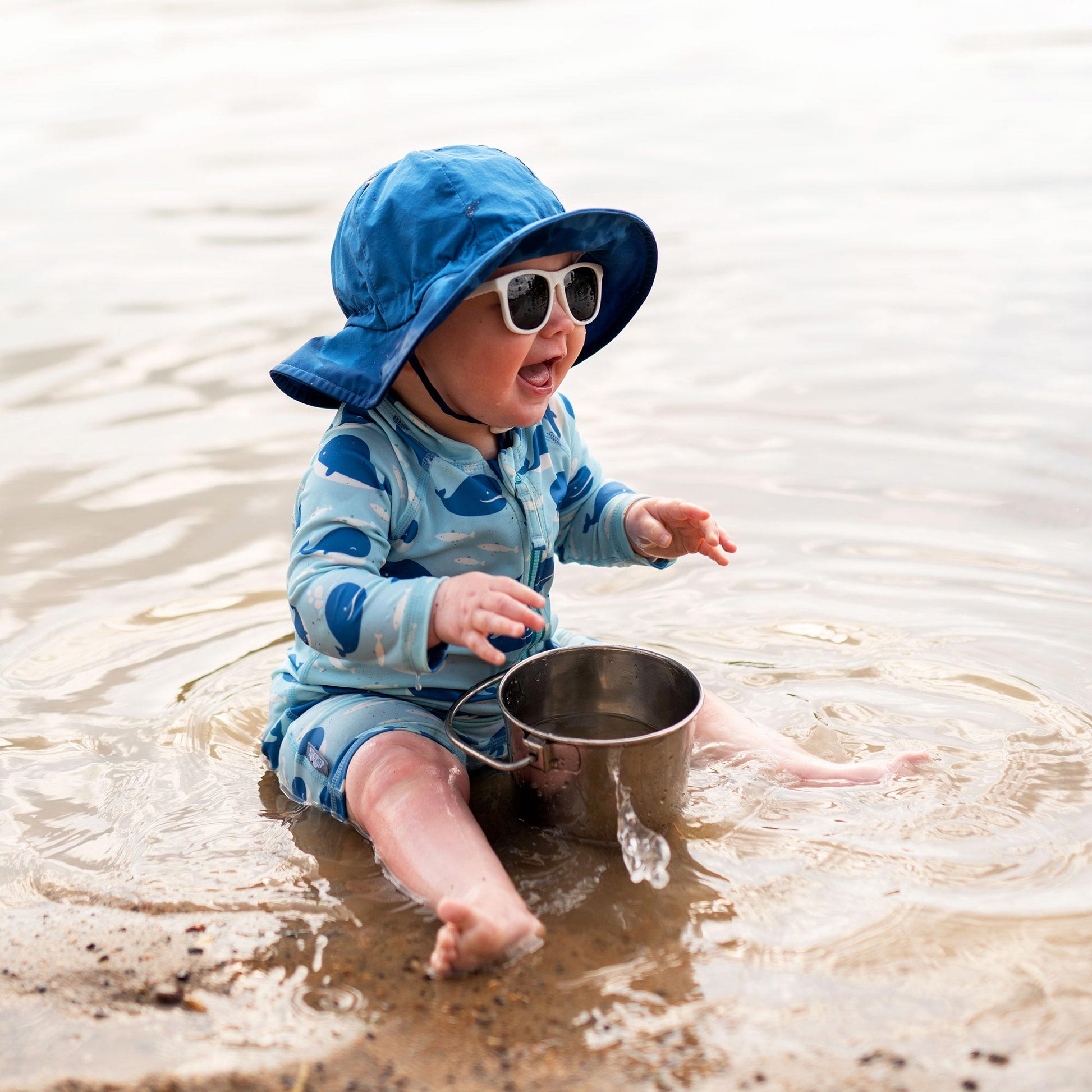 Our One Piece UV Jumpsuit provides all-day sun protection parents can trust!