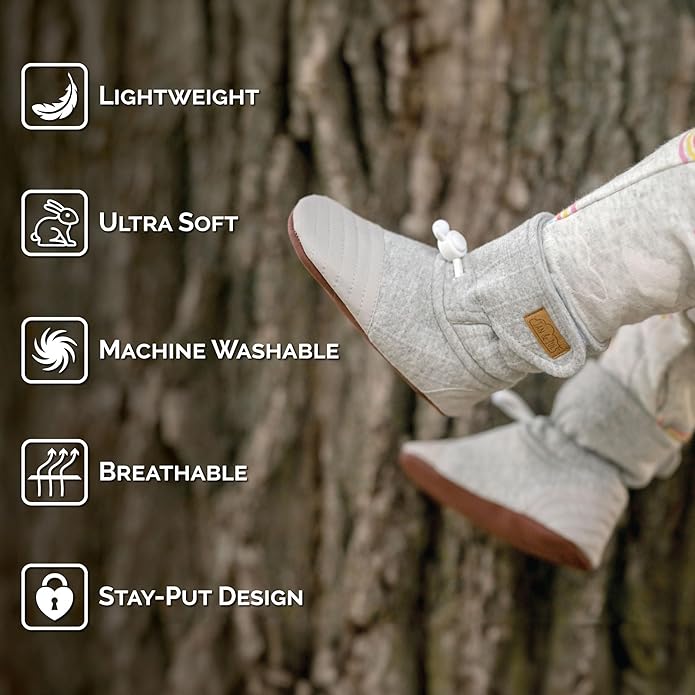 - 【NON-SLIP】: No more slipping on slick surfaces or wooden floors! These baby booties are super comfy with extra grip from the PU sole. Perfect for hand me downs with a reinforced toe and heel for added durability.