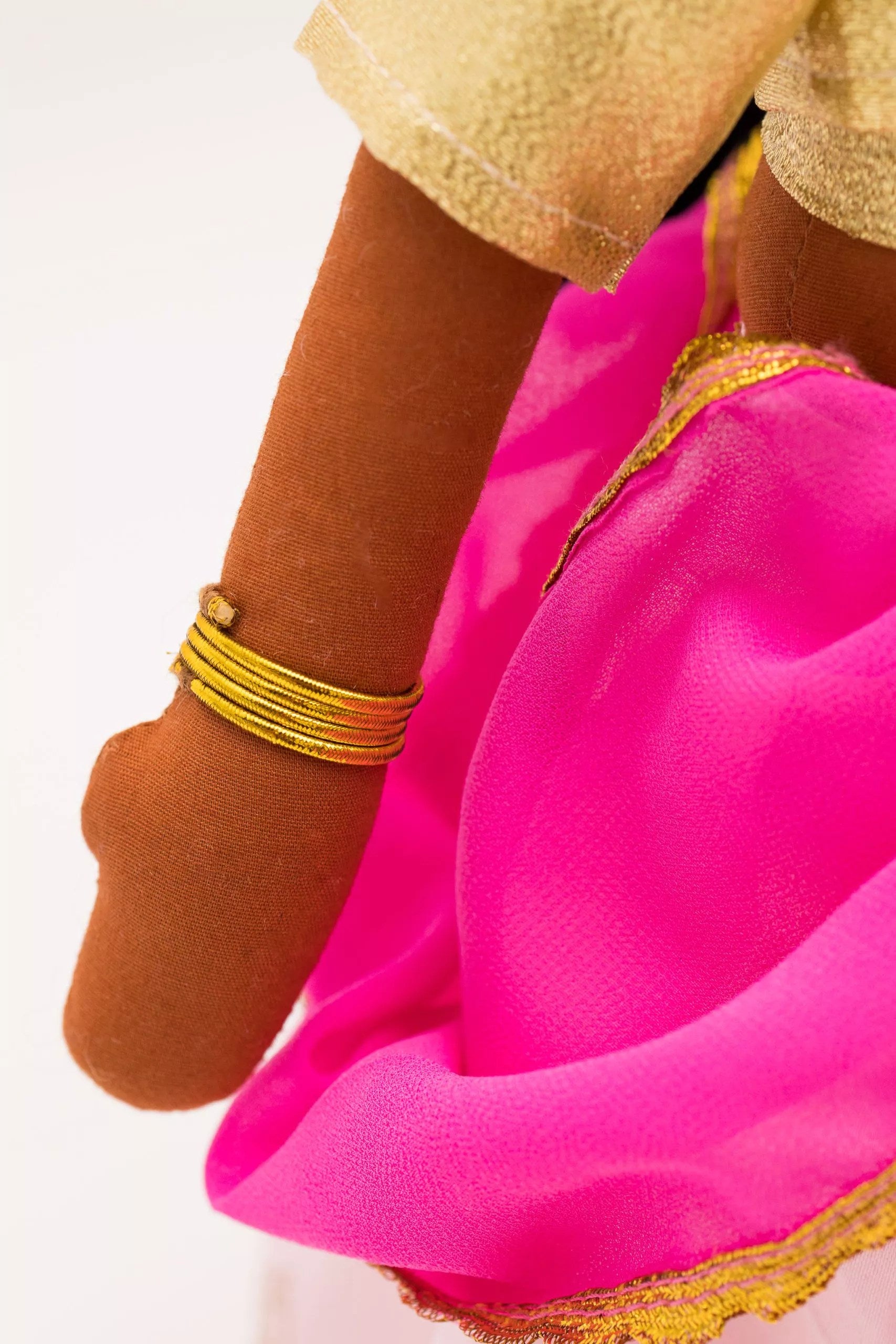 Introducing the “Kamala” Indian Doll from Joeydolls, an exquisite and authentic representation of Indian culture and tradition. Dressed in a stunning gold Choli and a stunning pink Lehenga skirt with intricate gold motif detailing this doll is the true embodiment of Indian elegance and beauty. The “Kamala” Indian Doll is meticulously crafted with exceptional attention to detail. She has gold bangles, earrings, and tikka which adds sophistication to her look. Her beautiful pink dupatta completes her ensemble with grace and poise.