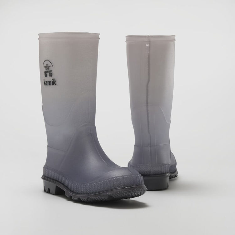 Dry feet, happy kid! Stomp Print kids' rain boots are made in Canada, 100% recyclable, and designed for rainy day adventures.