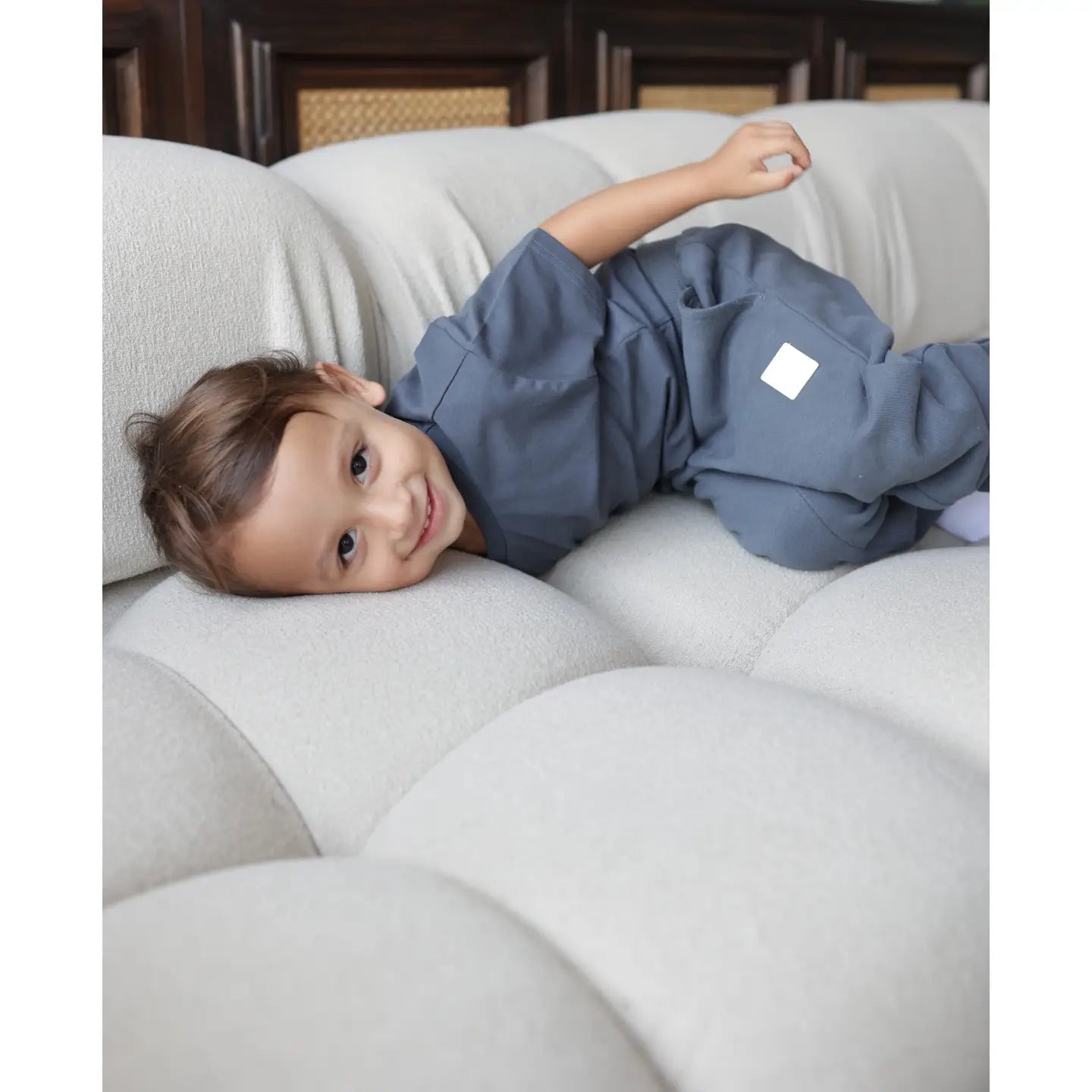Made from deluxe Brushed Terry, this hoodie features stylish drop shoulders, a crossover neckline, and a double-layer hood, all crafted from 100% organic cotton. Its soft and cozy feel makes it a go-to for everyday play, while added durability ensures it can withstand all their adventures. Plus, it's sustainably made, making it a choice you can feel good about.