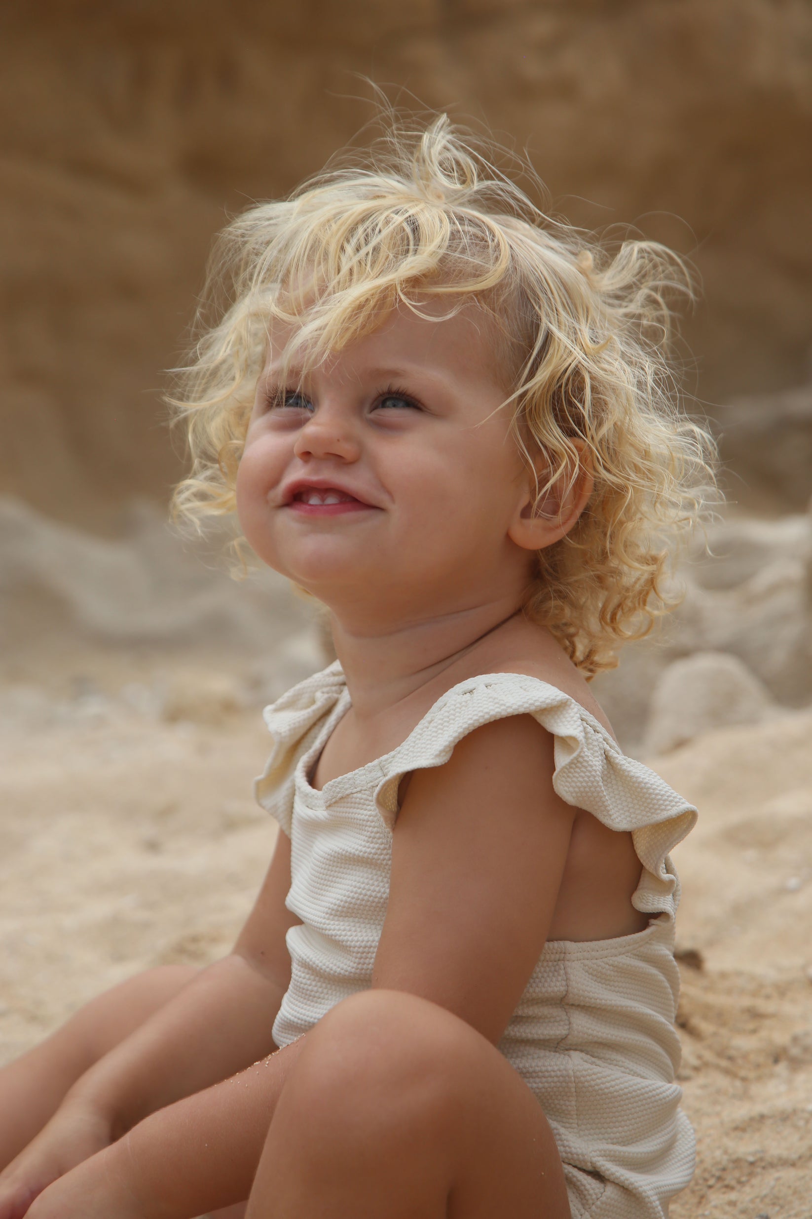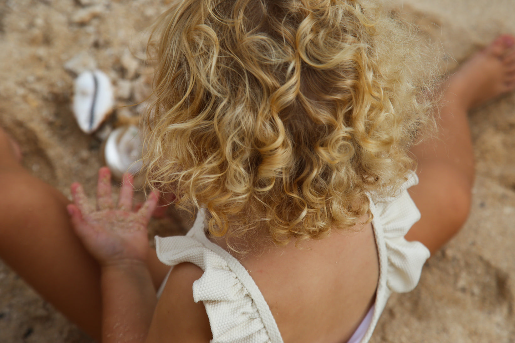 This adorable swimsuit boasts a playful ruffle design around the shoulders, making it perfect for a day of fun in the sun.