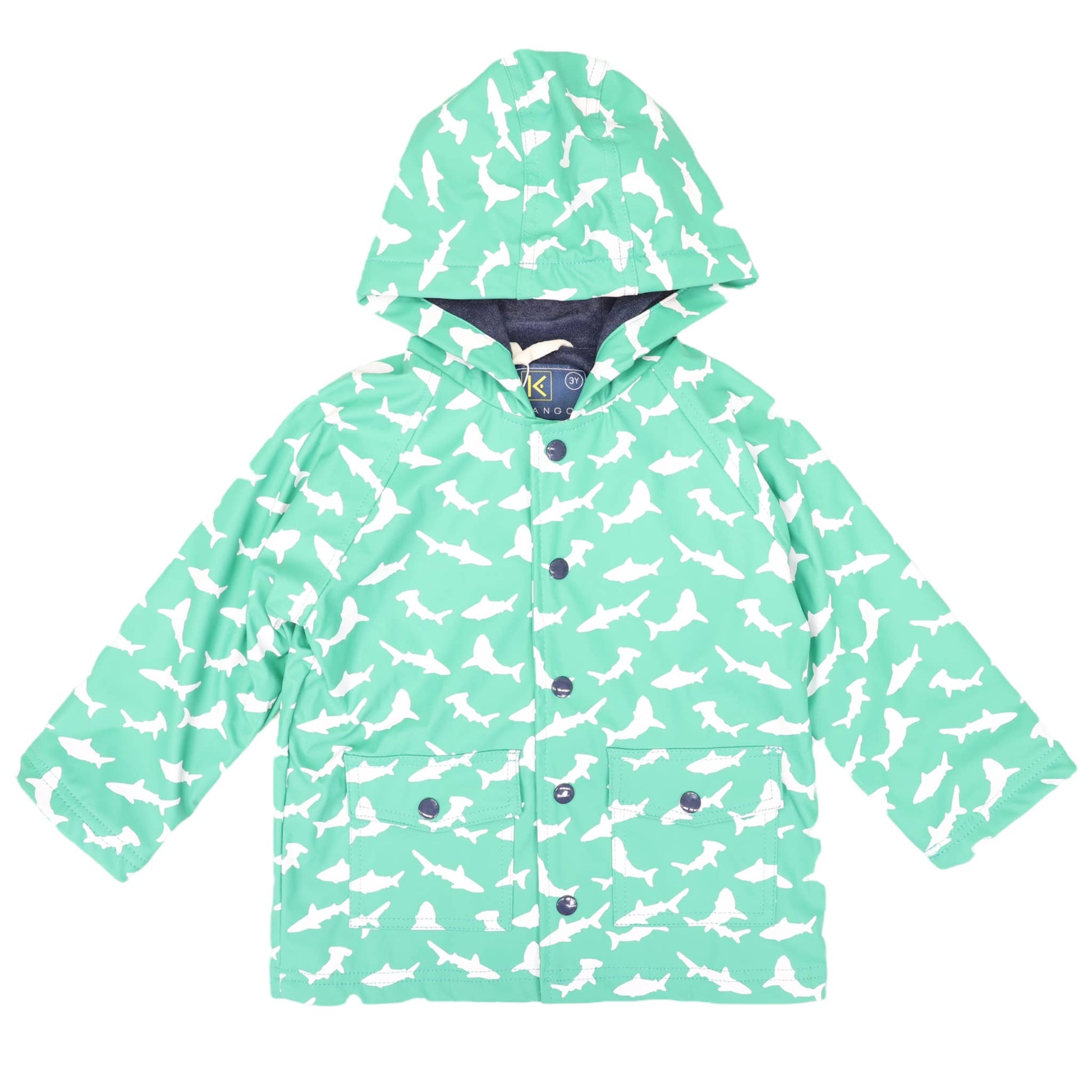 Introducing Korango’s Green Shark Colour Change Raincoat – your kids’ must-have jacket for any rainy day! This waterproof jacket is sure to excite with its all-over white shark print featuring a variety of species. When wet, the sharks transform into beautiful colours creating a fun and interactive element to your child’s rainy day outfit. It is designed with comfort in mind, featuring a hood and double breast pockets along with a luxuriously soft terry towelling lining - perfect for keeping them dry and warm wherever they go! Let your kids explore in style with the Green Shark Colour Change Raincoat!