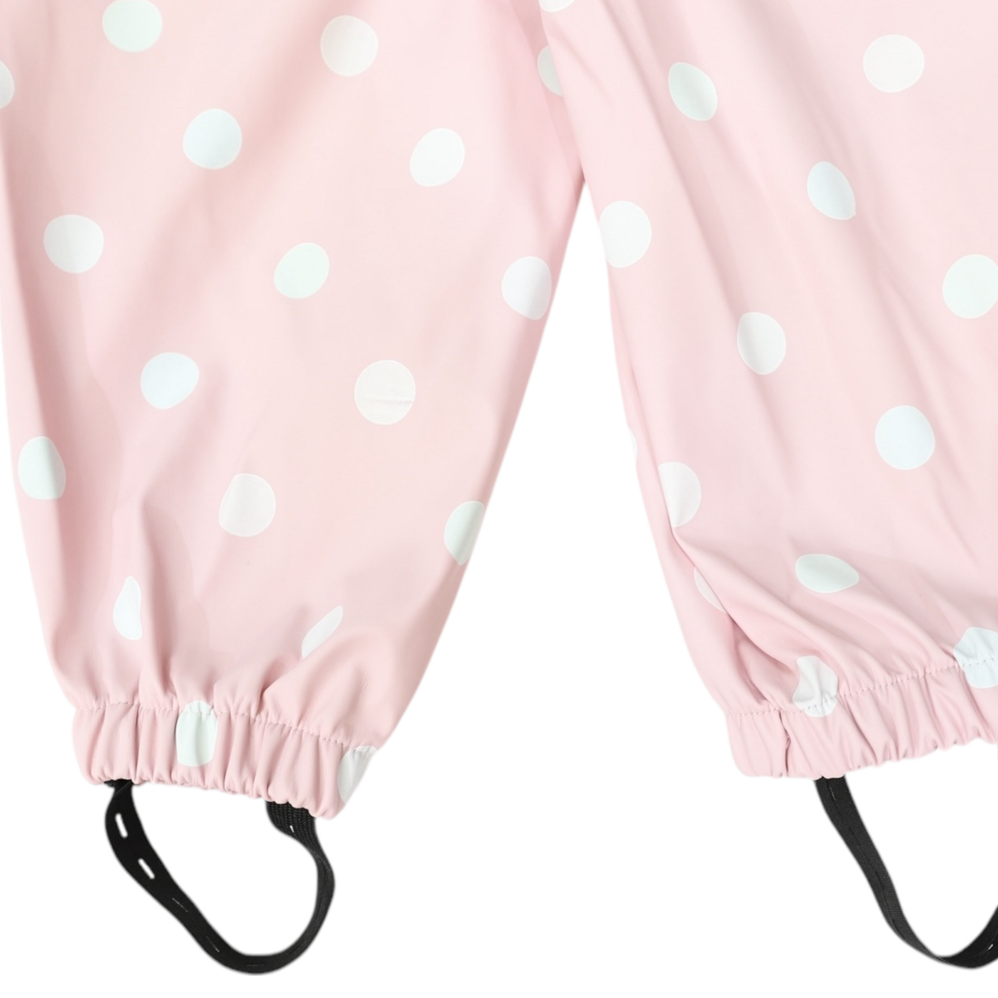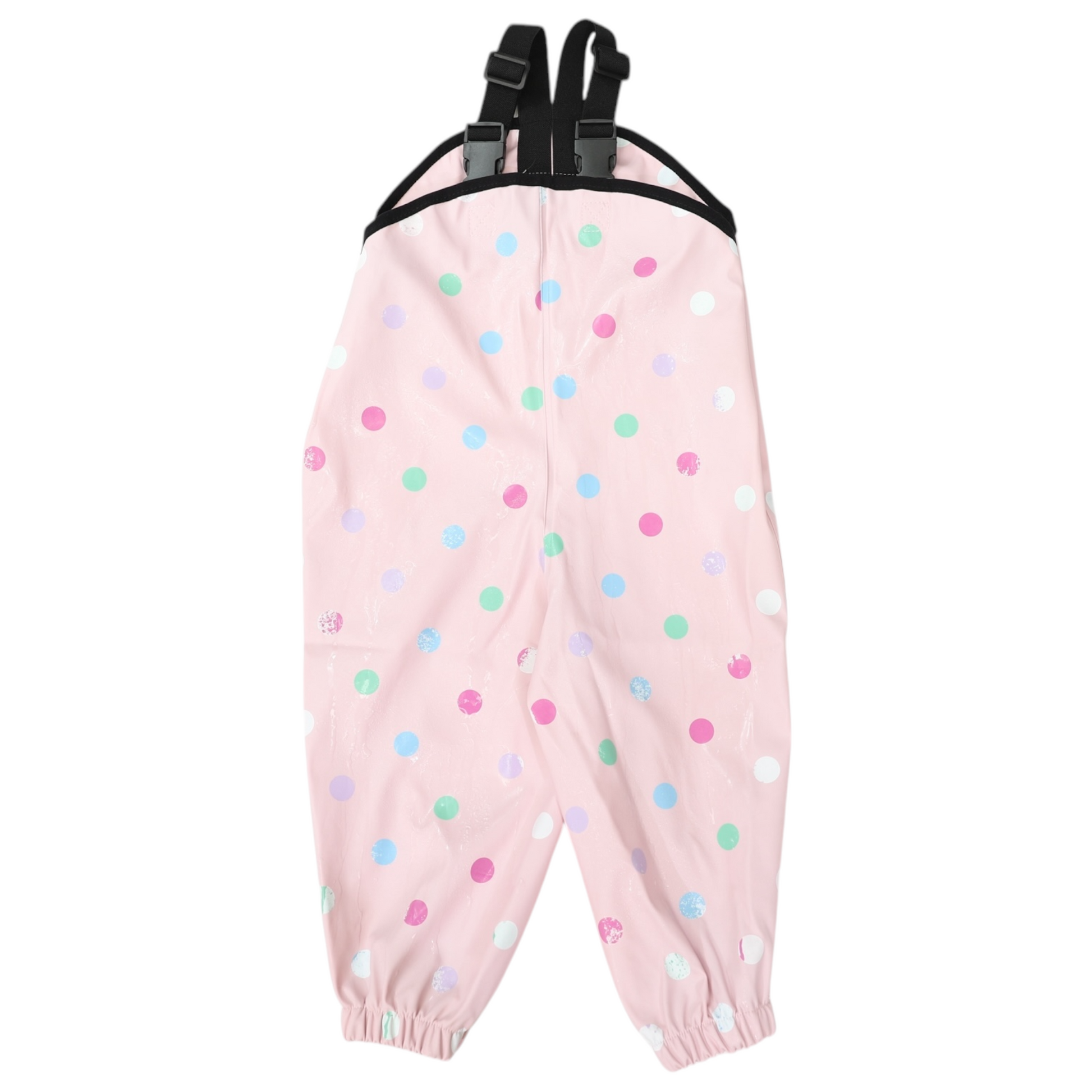 Transform rainy days into fun adventures with Korango's Polka Colour Change Waterproof Overall! Featuring a waterproof exterior, elastic ankle cuffs, adjustable foot straps, and shoulder straps with side-release buckles, it’s as practical as it is playful. Watch the white polka dots magically turn into vibrant colours when wet—perfect for stylish, active kids.