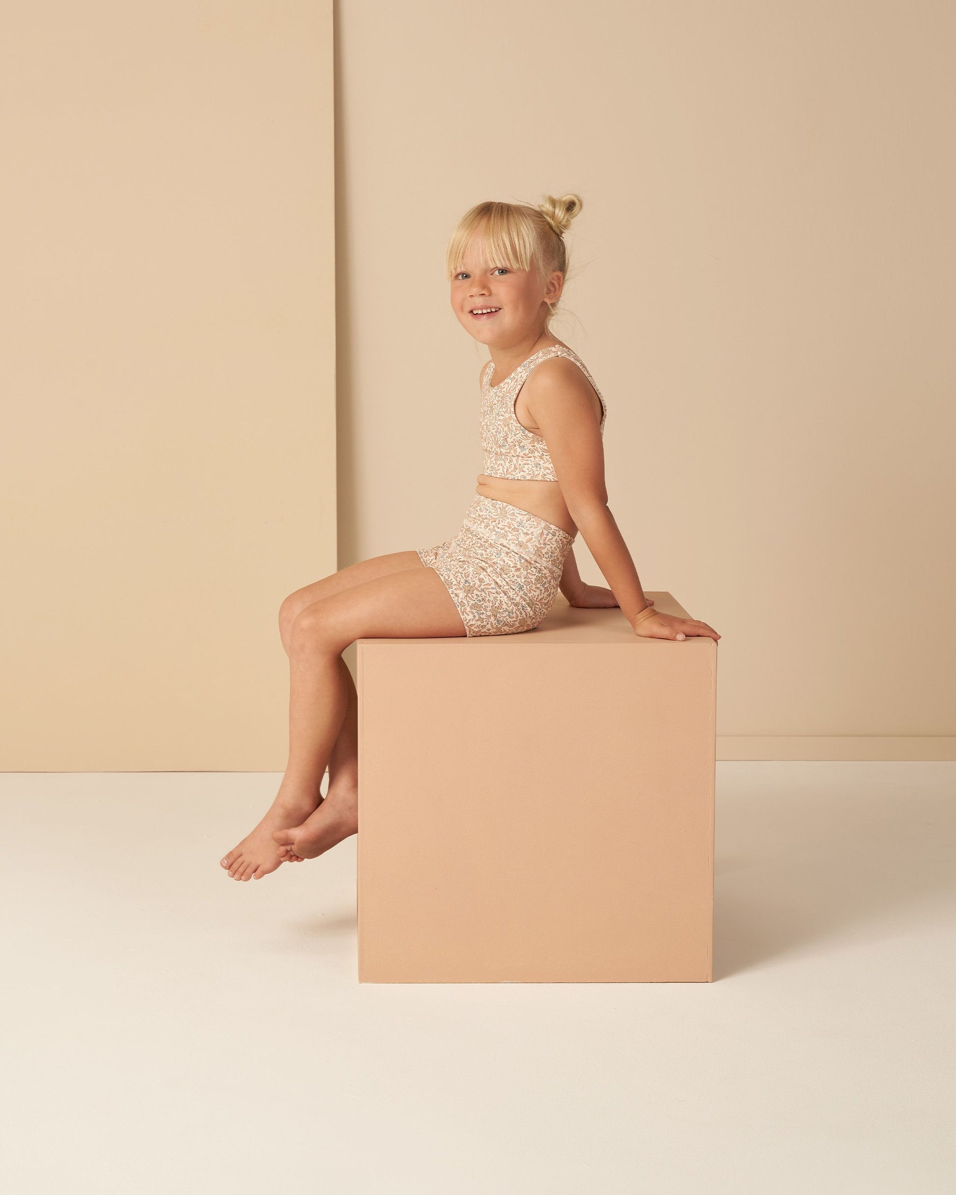 Featuring our 'blossom', 'sea' or 'lipstick' all over print. Muted yellow and blue tones come together to create spring blossoms perfect to complement any adventure.
