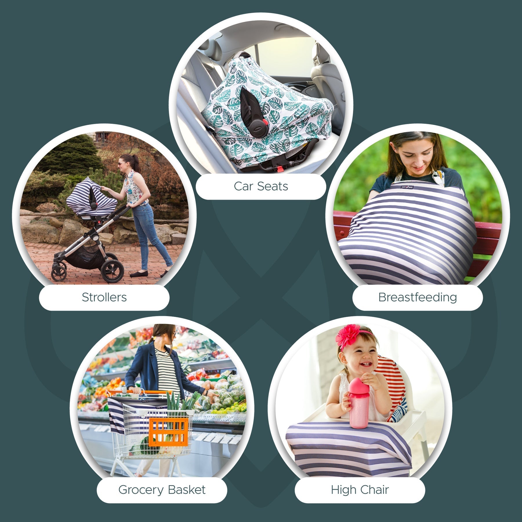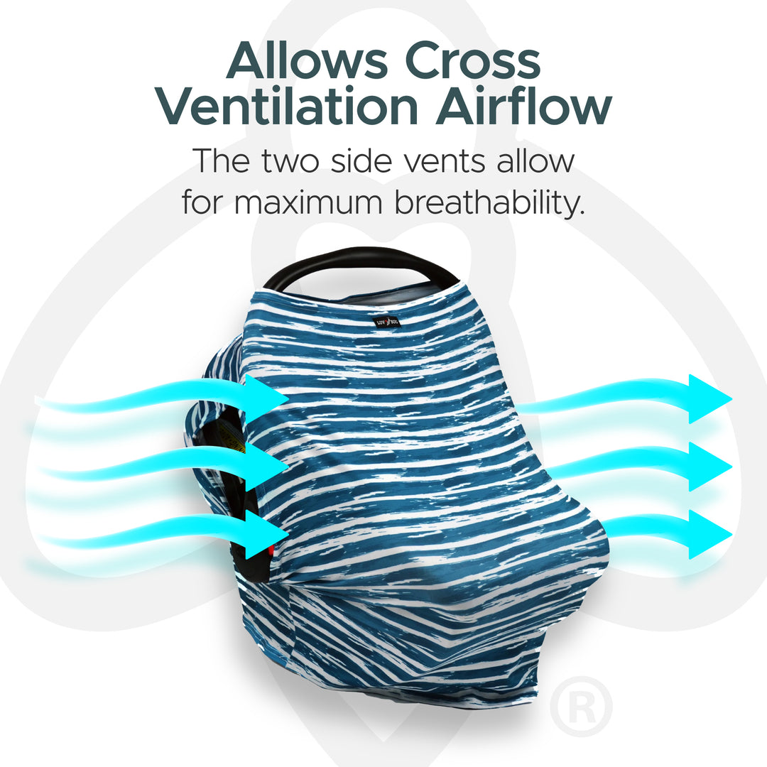 This car seat cover is the only fitted car seat cover that is made from UPF 50+ sunscreen fabric and has maximum breathability from two side vents that allow cross ventilation airflow. The fabric is ultra-soft, moisture wicking, lightweight, and able to be stretched over most infant size car seats. Highly versatile, the cover protects from the weather, provides privacy when needed, great for nursing, shopping cart cover, and is compact and easy to travel with. Loaded with style and function, the cover is the perfect gift for any parent.
