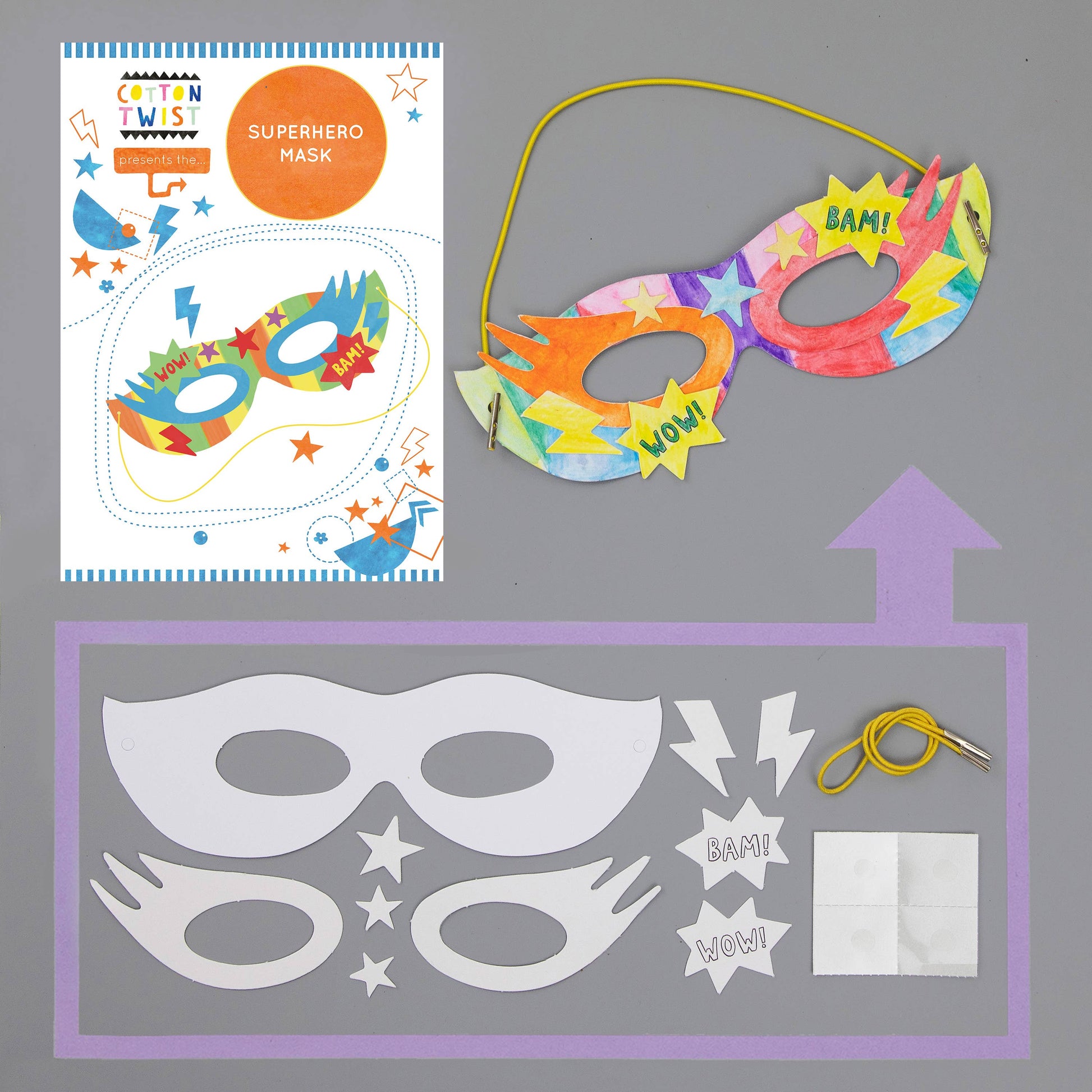 Children can use the mask base & cut-outs to embellish their masks and create their favourite superhero mask. Colour in your mask & accessories, attaching them with the glue dots, then it's time to show family & friends your special powers! In a bid to banish plastic from our homes, Cotton Twist products are lovingly assembled by hand, & all components are as good as we can possibly make them.