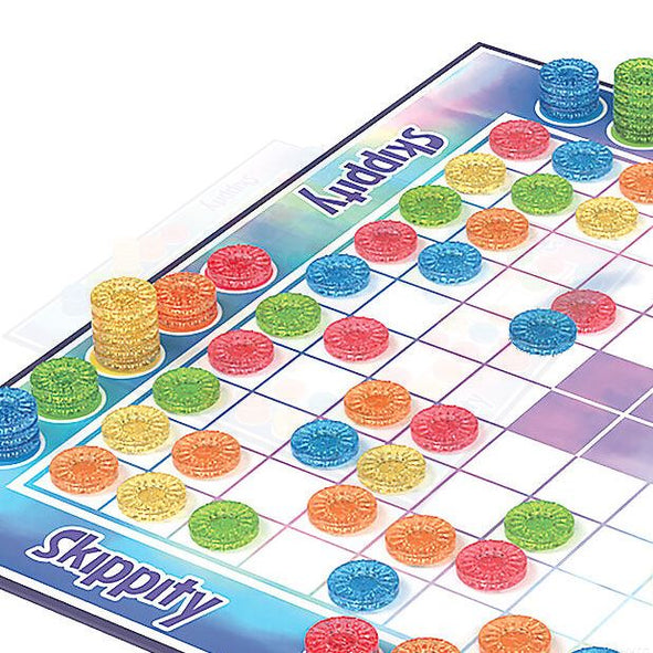 Introduce your kids to Skippity, the fast and fun game perfect for jumpers of all ages! This easy-to-learn game allows players to capture and stack their skippers in a race to complete color sets. Don't just jump at the chance to play, jump for joy with Skippity!