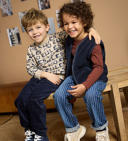 Elegant Minymo blouse in navy blue with a ribbed structure. The Blouse has a round neckline with button closure at the front. It has long sleeves and a fake pocket on the chest.