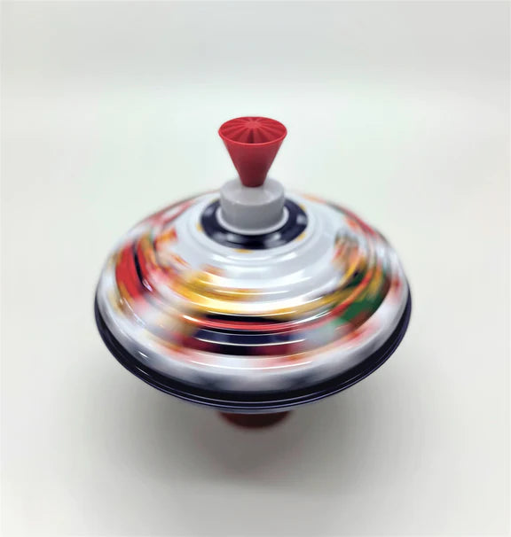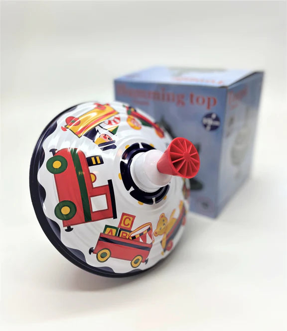 - HIGH-QUALITY TIN: Made with high-quality tin and plastic, this spinning top toy is durable and built to last.