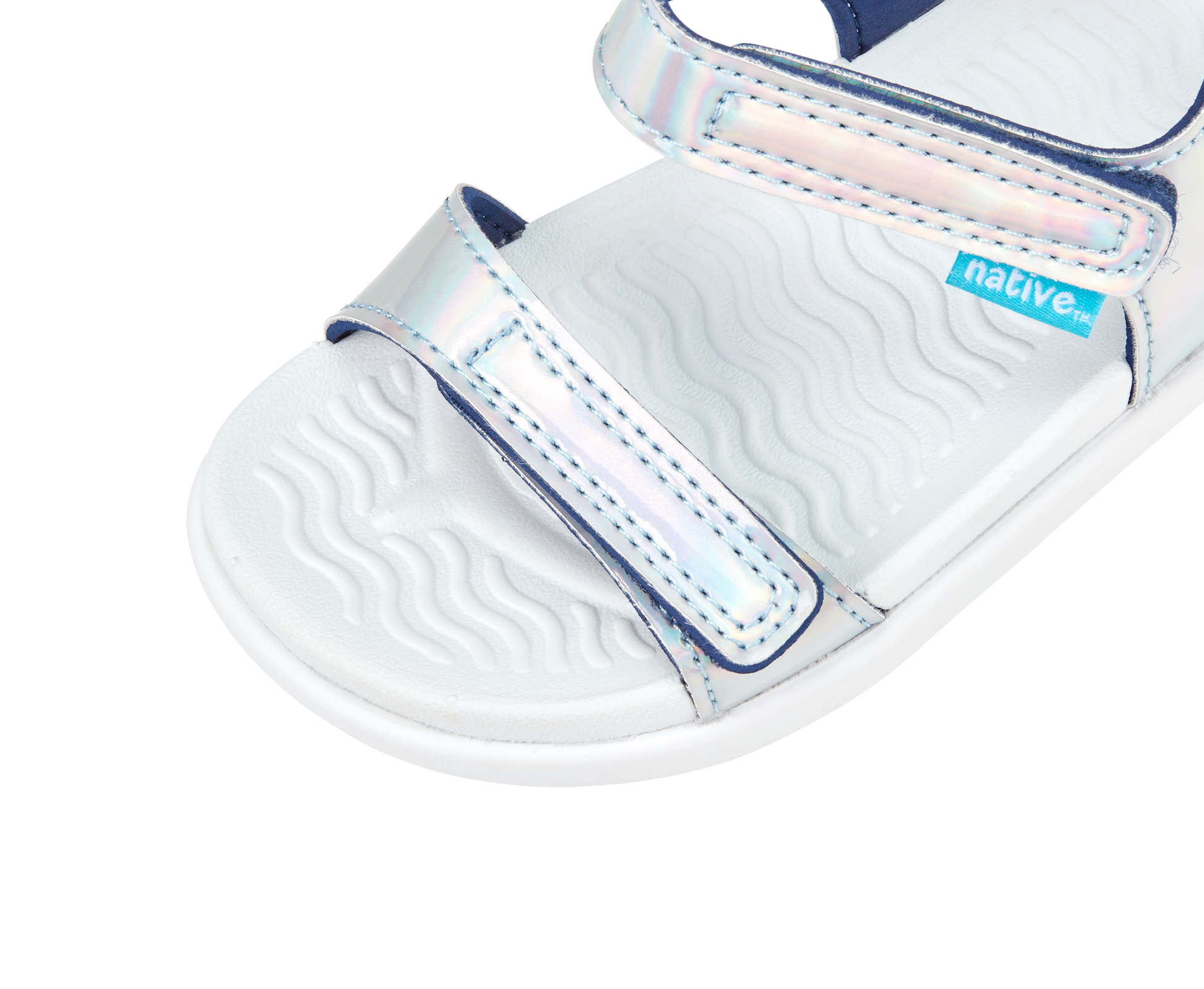 Drift seamlessly between sand and sidewalk in the Charley sandal. Style and comfort start at the sole, cushioning feet with a contoured EVA footbed and outsole. Holographic PU hook-and-loop straps keep kids ready for action at all times. Improved perimeter stitching on the straps prevent delamination.