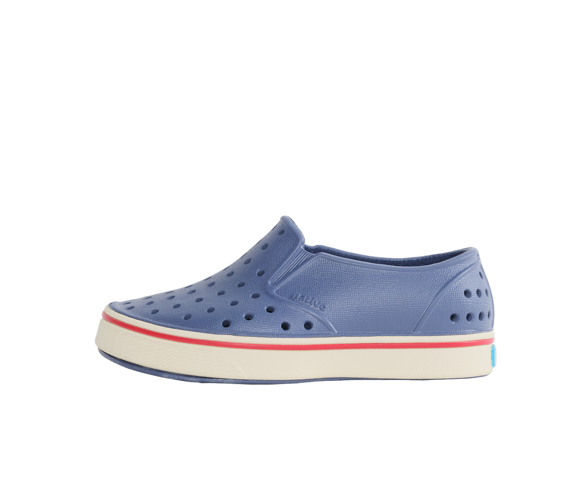 Another slip-on sibling in Natives EVA family in a wider fit, Miles is streamlined for all worldwide wayfarers, even the tiny ones. Washable, ultralight and perforated for air flow - there's no better companion for travelling seaside and beyond. Made in 2-part EVA construction with cup-outsole and painted stripe detail.
