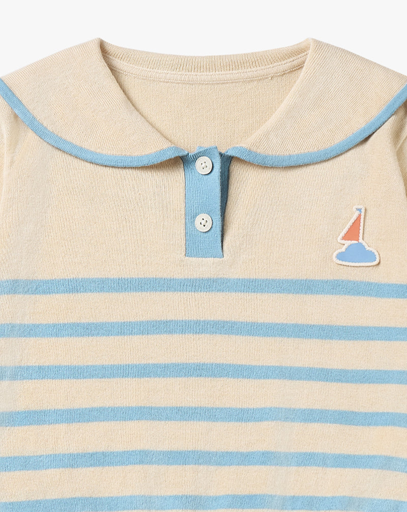This knit sweater has playful stripes, a playful embroidered detail, and a Peter Pan collar - perfect for explorers to set sail on their next adventure!