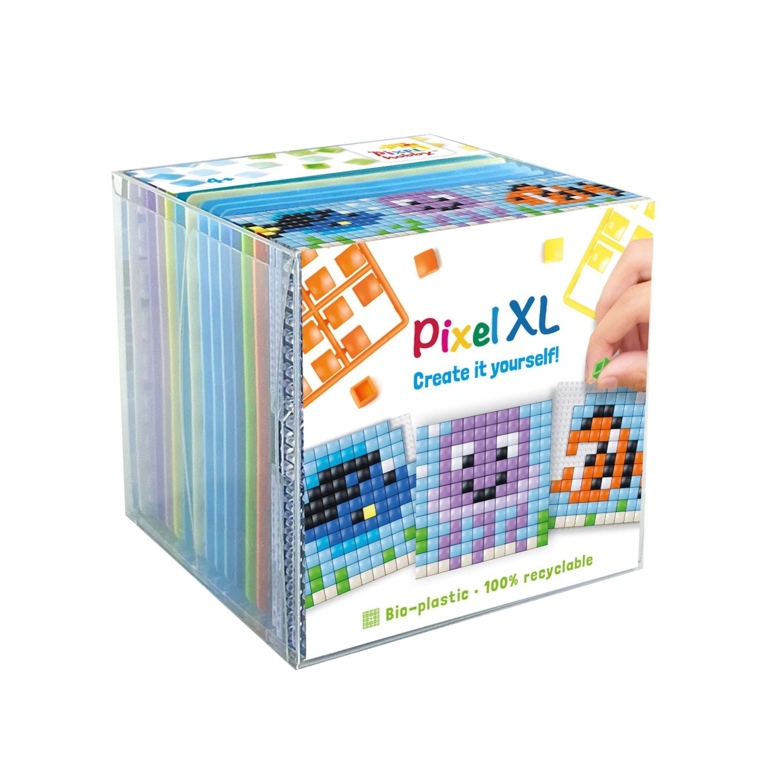 The Pixel Art Gift Set is perfect for anyone aged 6 and above, providing everything needed to create stunning pixel artwork. Each set includes 3 squared baseplates (6x6 cm), 12 pixel squares, and patterns for 3 unique designs in one theme. Simply place a baseplate over the pattern, select the correct color, and add your pixel squares, which are made from sustainable bio-plastics in the Netherlands. This set is best suited for children aged 4 years and over.
