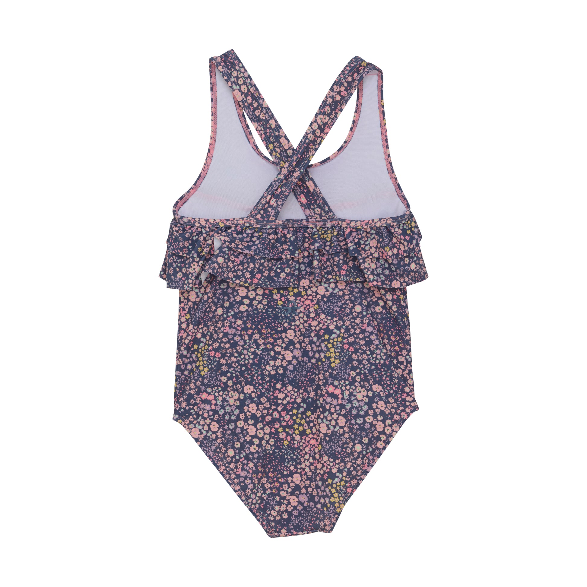 Beautiful swimsuit with all-over-print. The swimsuit has wide straps with frill effect over the shoulders that meet on the back for a good fit. Certified acc. to OEKO-TEX® STANDARD 100 Cert. No. 2276-364 DTI