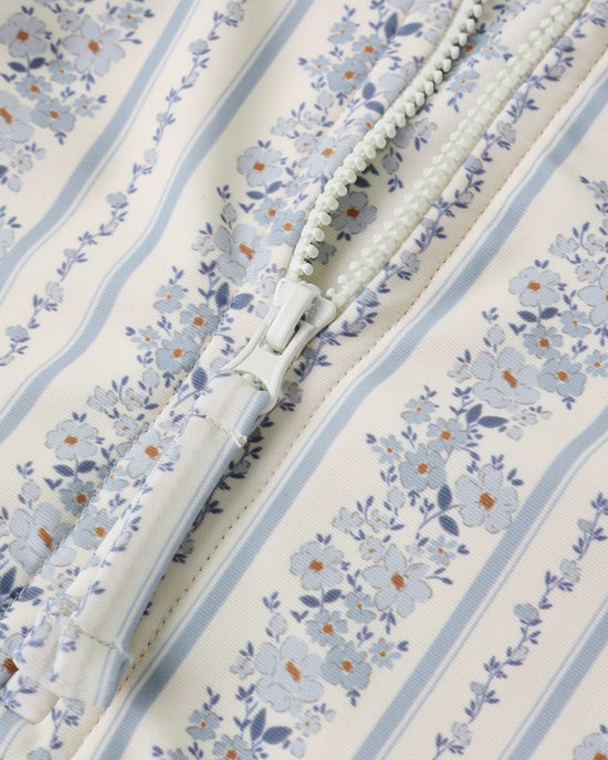 This one-piece rashguard swimsuit will have your little one protected from the sun in style. Featuring a zipper front closure and ruffle details at the leg openings.