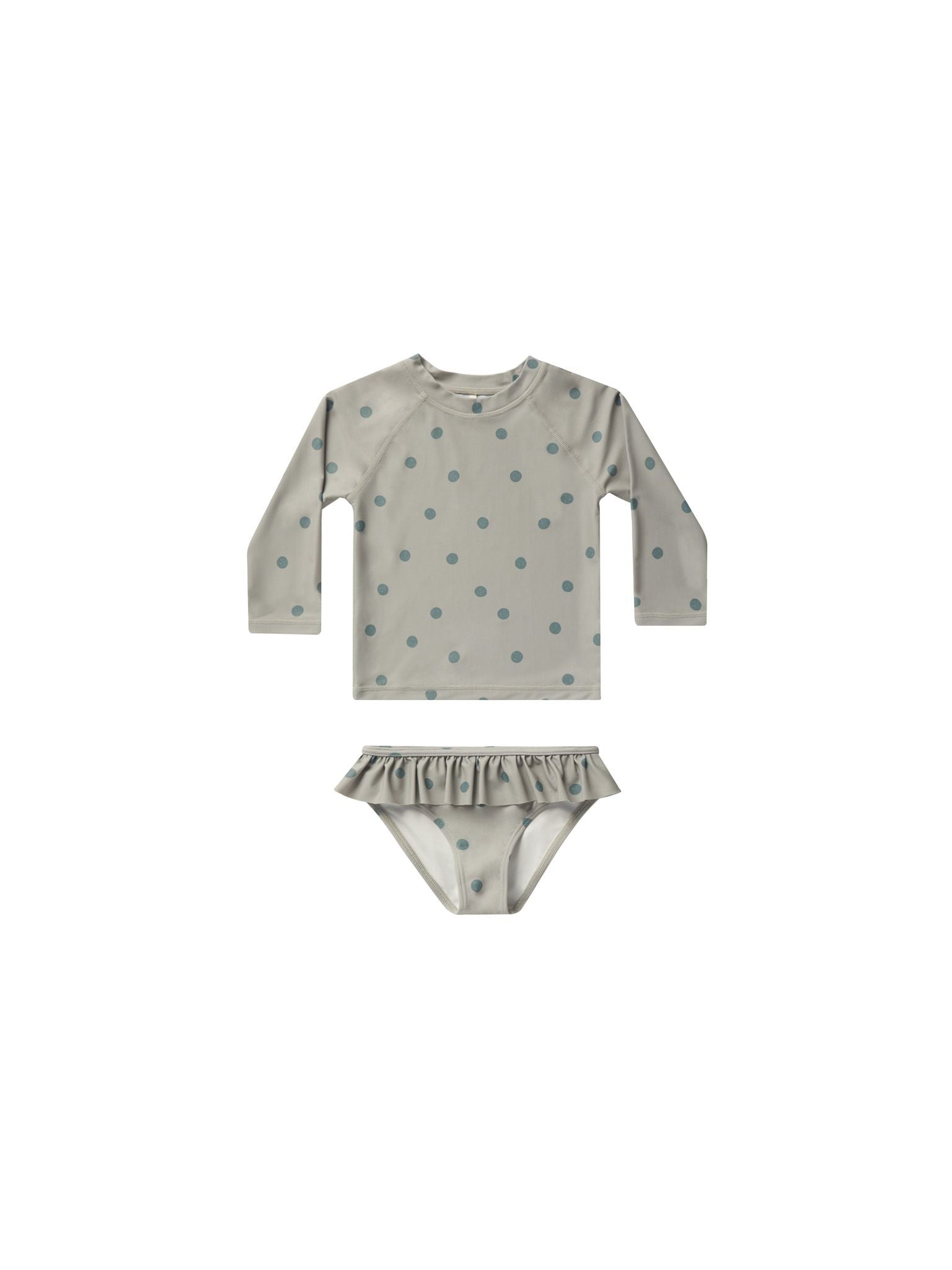 Choose between two delightful prints to suit her style: the 'blue floral' all-over print on natural fabric, with muted hues evoking sunny day, blue sky vibes; or the 'polka dot' all-over print in seafoam, bringing a playful and classic vibe reminiscent of retro beach days.