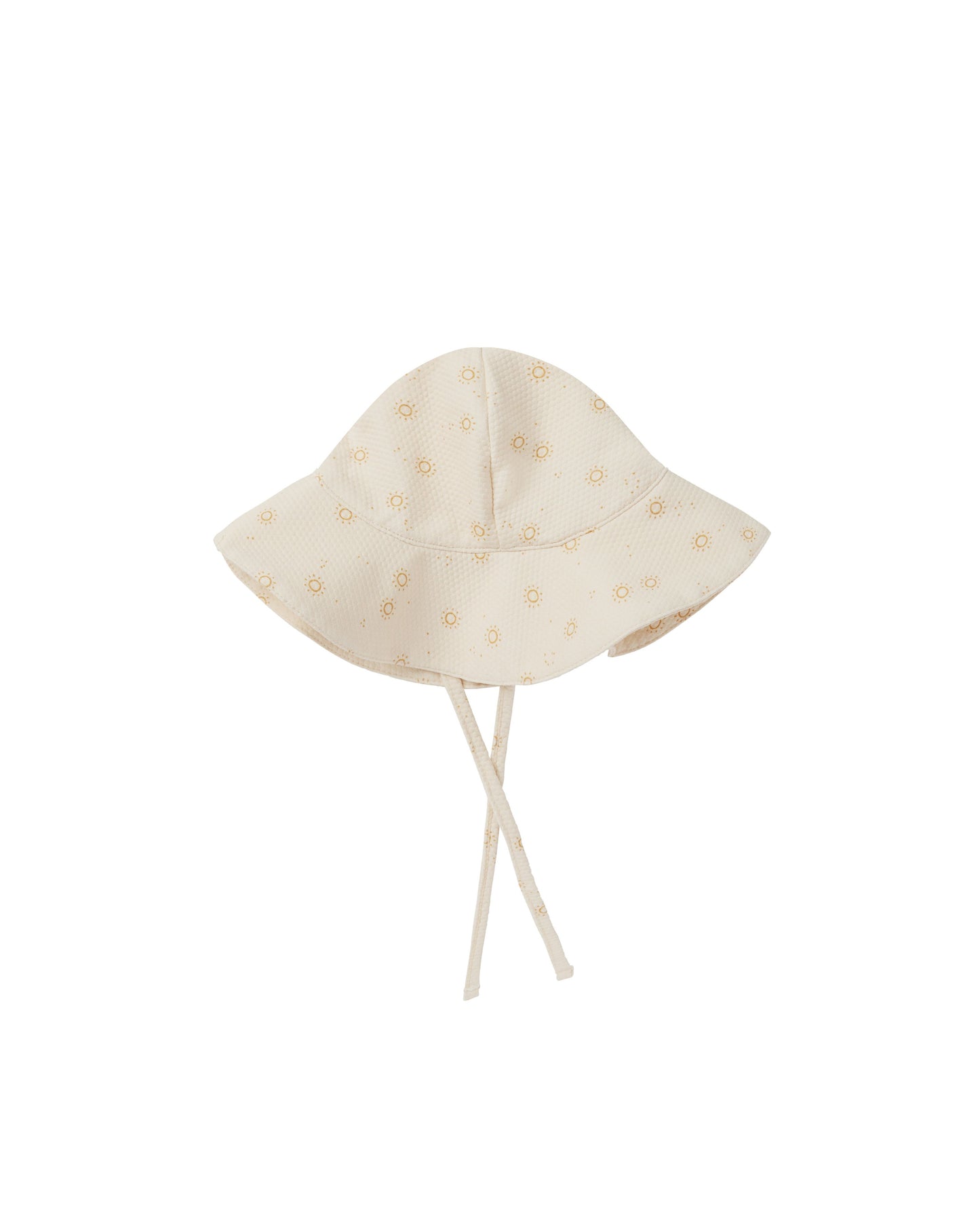 This floppy sun hat comes in fun prints and colors with self tie straps to keep little ones protected from the sun in style.