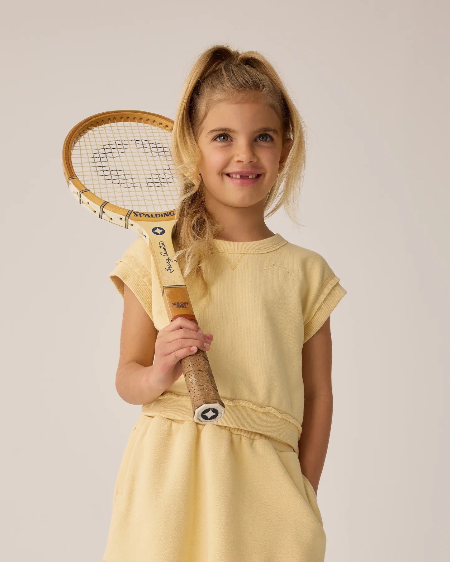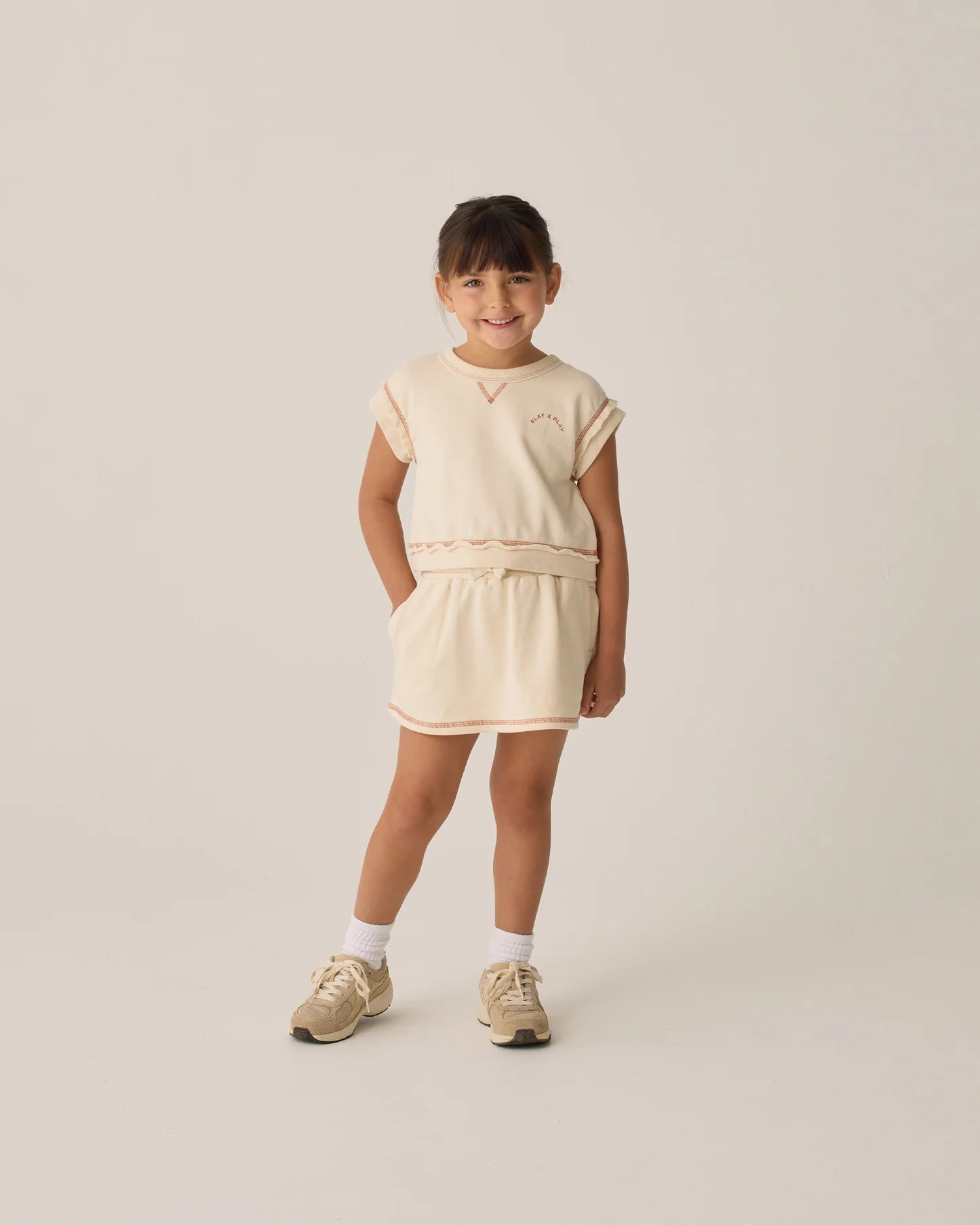 This sporty pullover features gathered hems with raw edge detailing, and overlock stitching for added style. Pair with our Volley Skirt to complete your look.