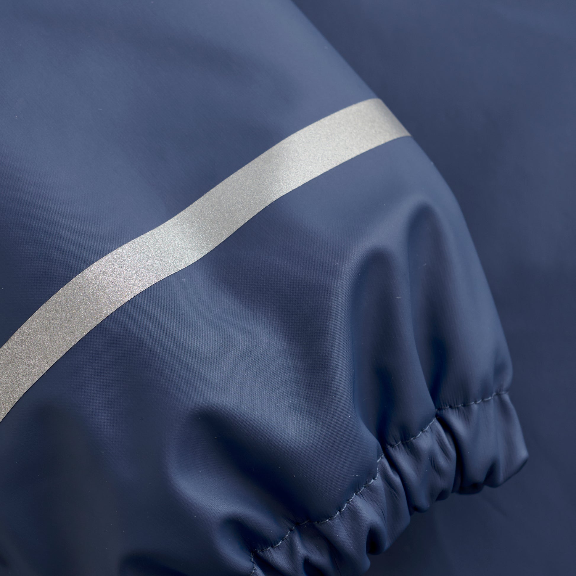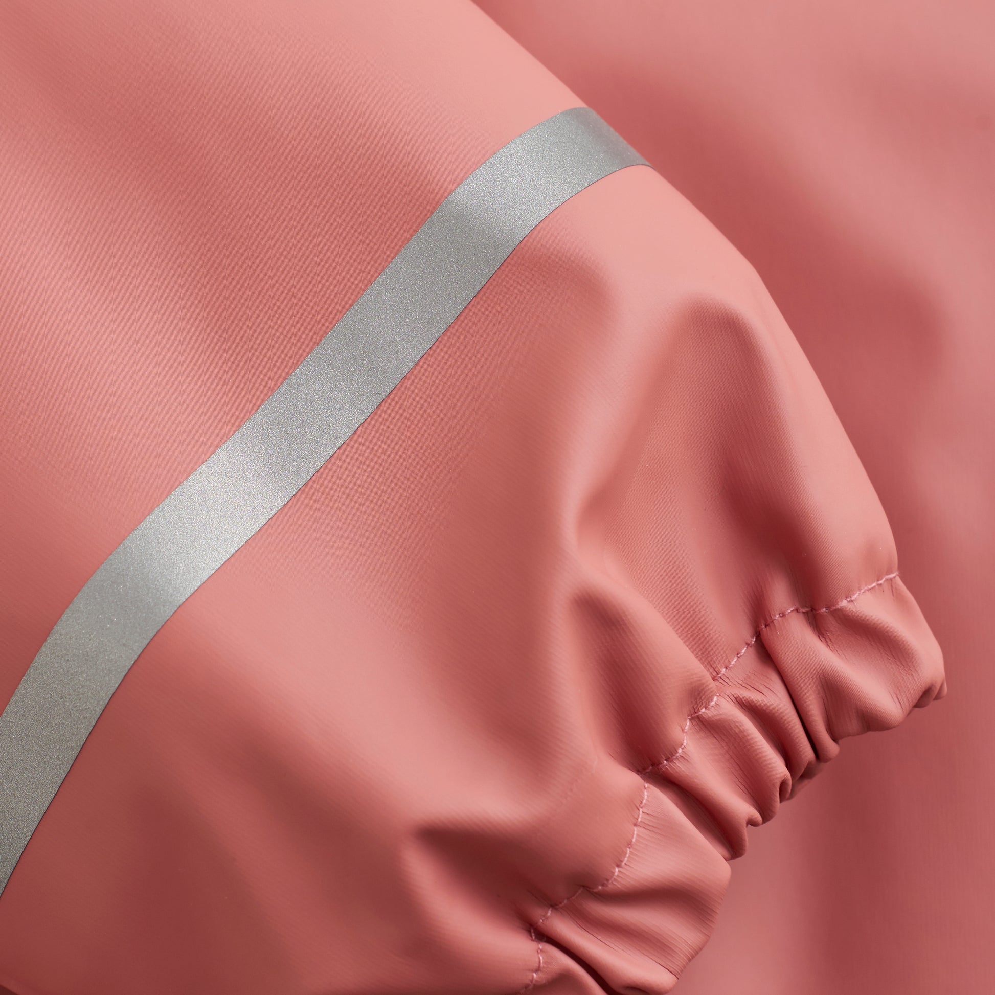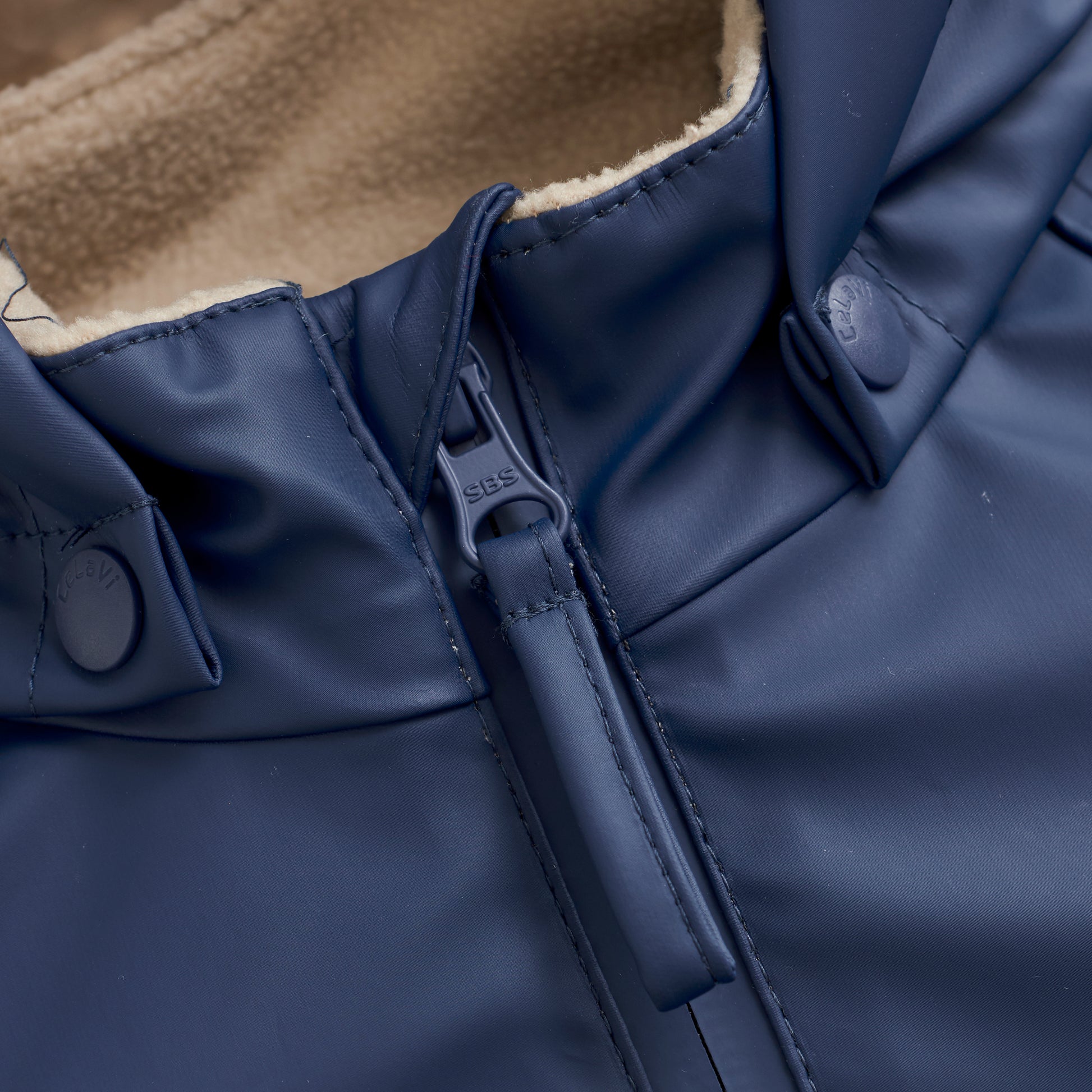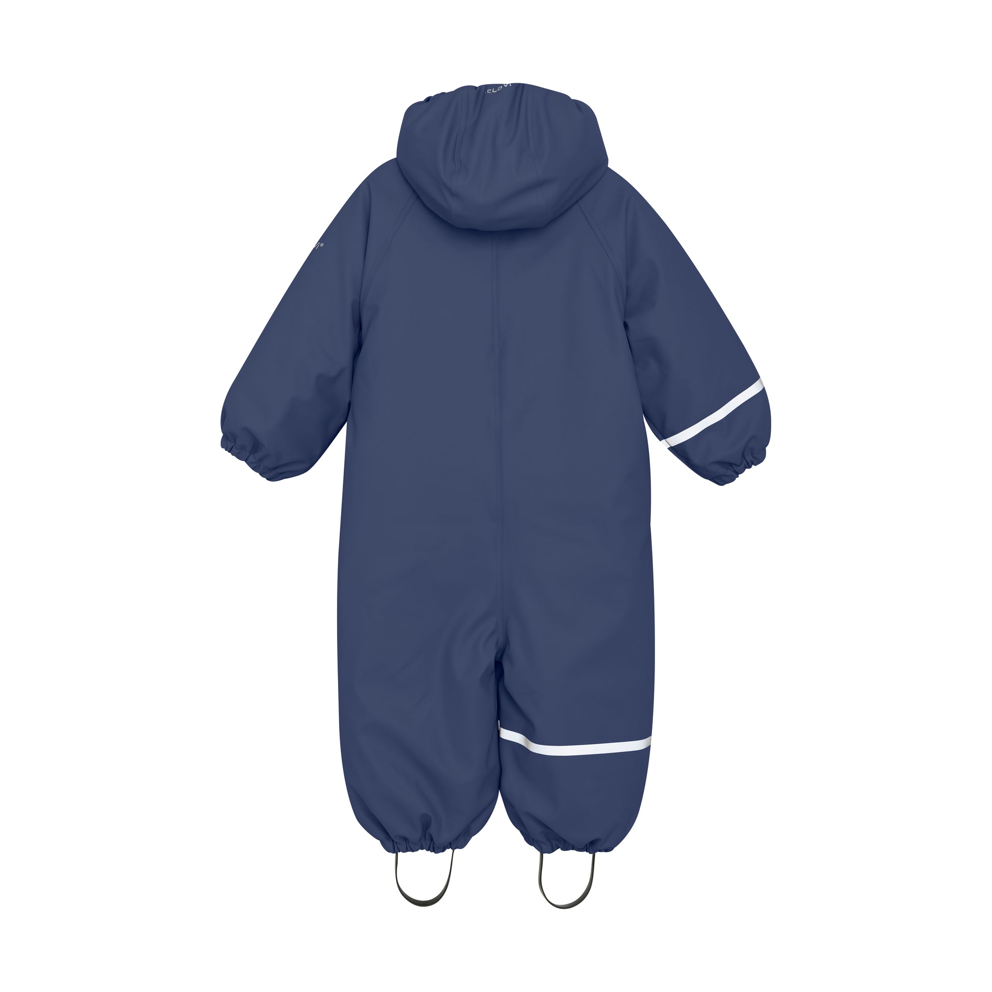 Solid colored winter rainsuit made in strong durable PU from CeLaVi. Tested water column pressure of 10,000 mm. The suit opens at the front with a waterproff zipper with chin protector and double windpole. The chin protector makes sure that the zipper feels soft under the chin. The wintersuit has warm padding and a detachable hood. Adjustable rubber foot straps that can be put under the boots so that it stays in place. Reflective details in several places on the suit. It has a name tag inside. Certified acc. to GRS - Made with 66% Recycled Material CERES-0366