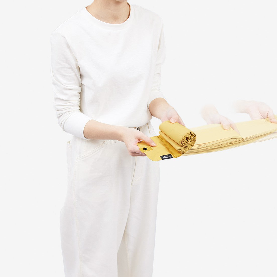 The bag folds down neatly and quickly in a second like magic - just one-pull and roll!