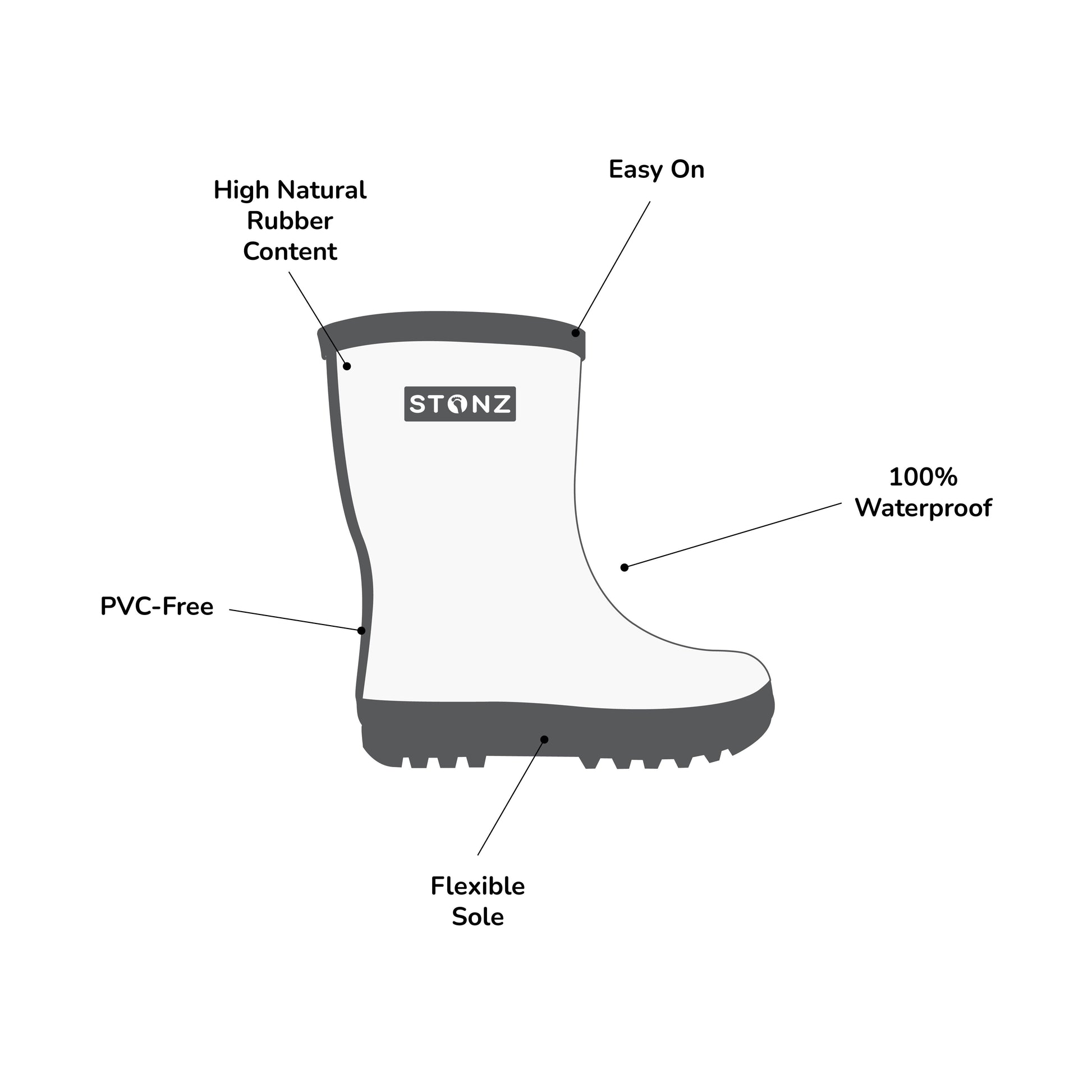 - Naturally waterproof & ultra-flexible – Made with 52% natural rubber, these boots are soft, durable, and bend with movement for all-day comfort while keeping little feet dry.