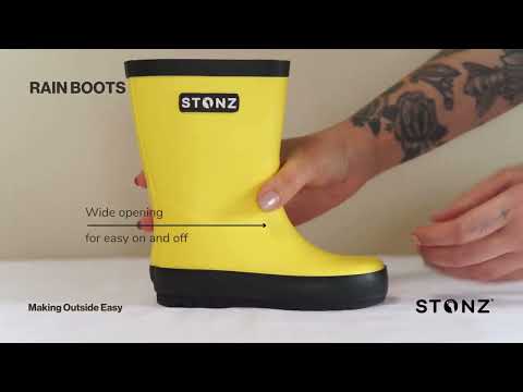 Splash, stomp, and explore—rain or shine! Assembled by hand and made with 52% natural rubber, these fully waterproof rain boots are super flexible and durable for active play. A wide toe box supports natural movement, while the soft lining and cushioned insole keep little feet comfy. With a slip-resistant sole, kids stay steady on wet and muddy terrain.